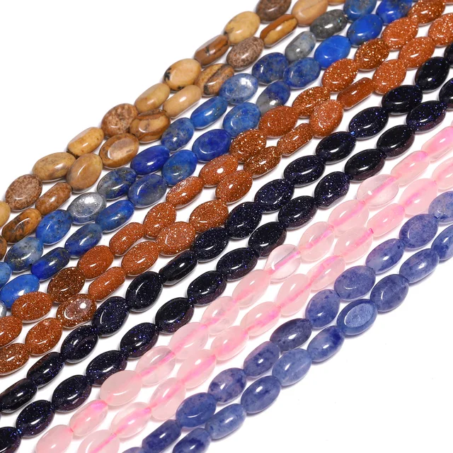 6x4mm Natural Rose Quartz Lapis Lazuli Blue Sodalite Jasper Stone Beads Flat Oval Shape Beads for Jewelry Making Diy Accessories