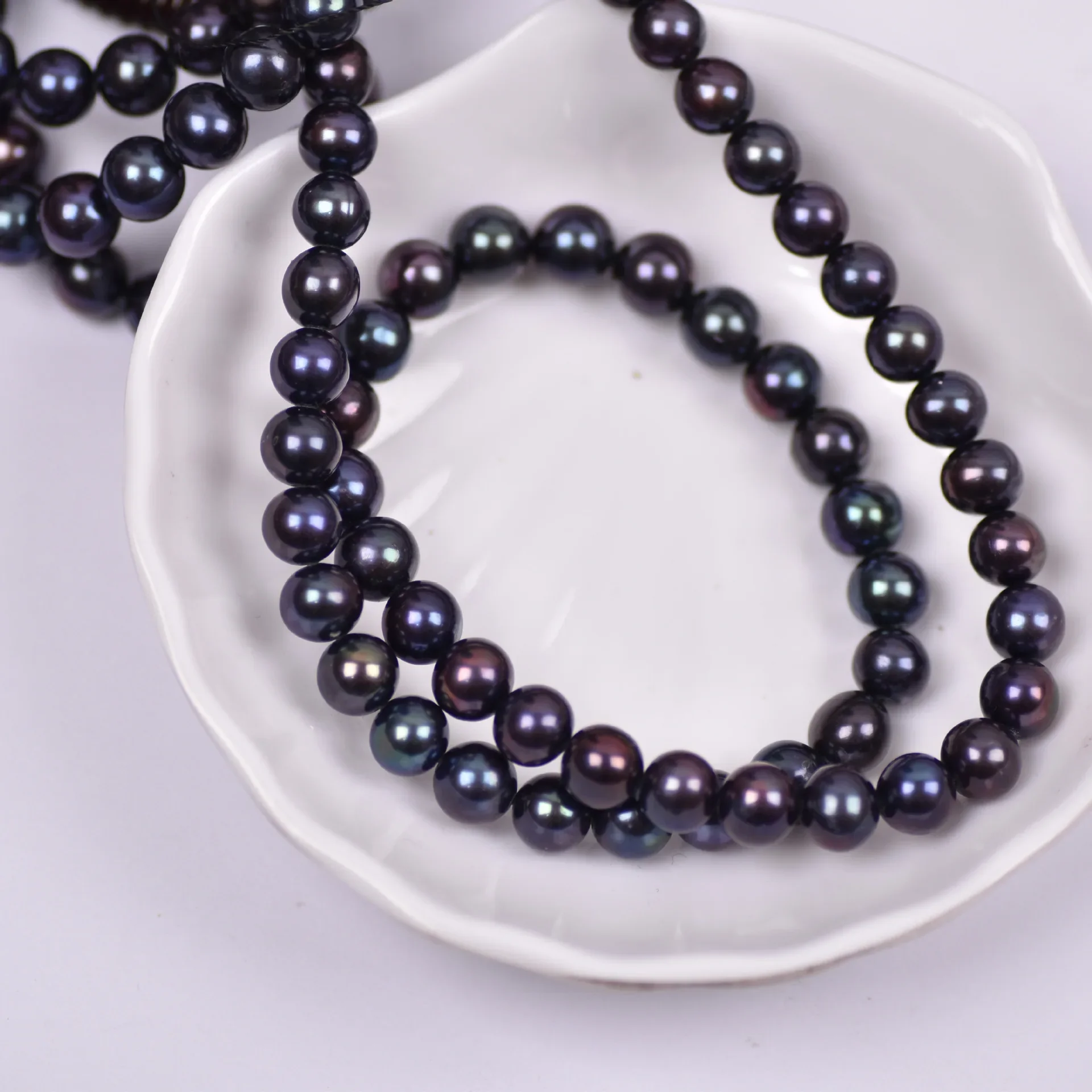 8-9mm 4A Brilliant Natural Freshwater Peacock Black Round Pearl Velvety Bead Gift Jewelry Make DIY Necklace Bracelet Accessories