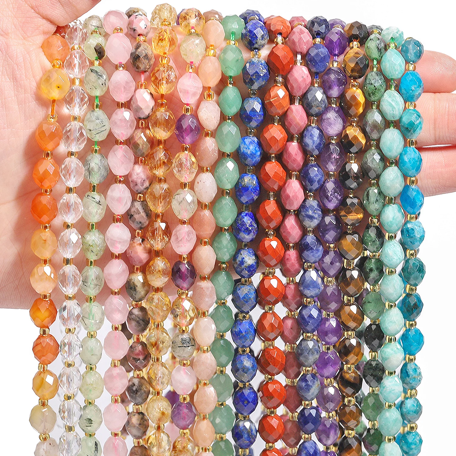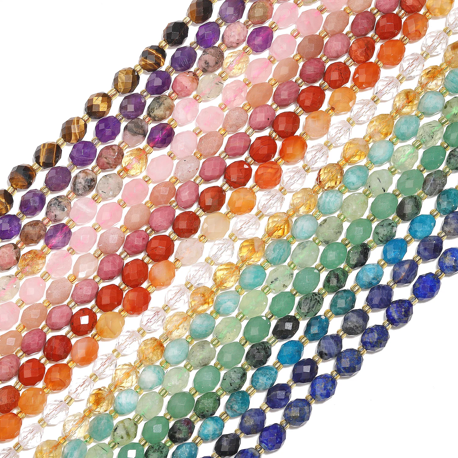 AAA 8x7mm Faceted Natural Apatite Citrine Lapis Lazuli Prehnite Gems Beads Loose Beads for Jewelry Making Diy Accessories