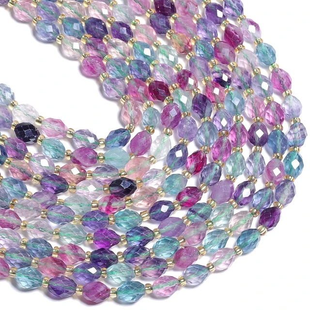 AAA Faceted Natural Colored Fluorite Quartz Beads 8x7mm Oval Shape Beads for Jewelry Making Diy Beading Accessories