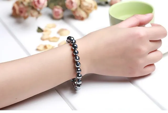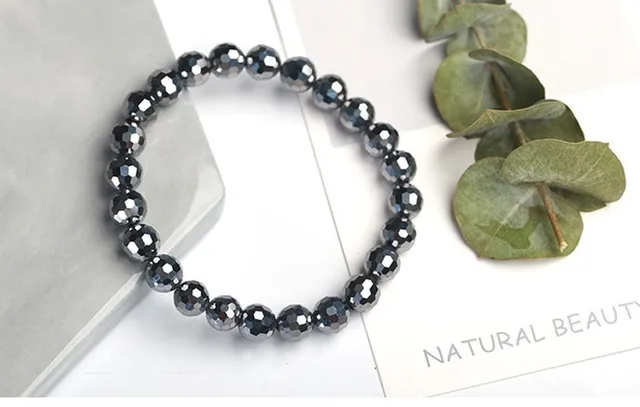 AAA Natural Black Shine Terahertz Round Beads Stone Beads Bracelet Women 6/8/10mm Men Jewelry Health Wristband Gift