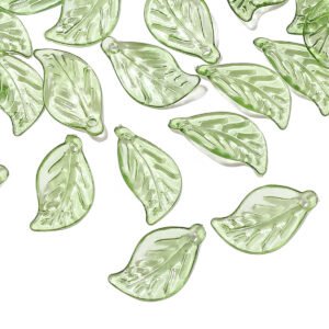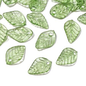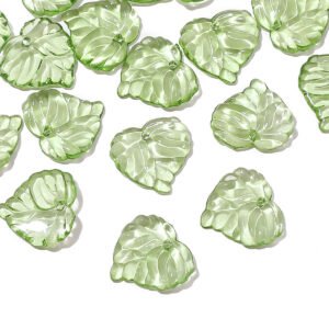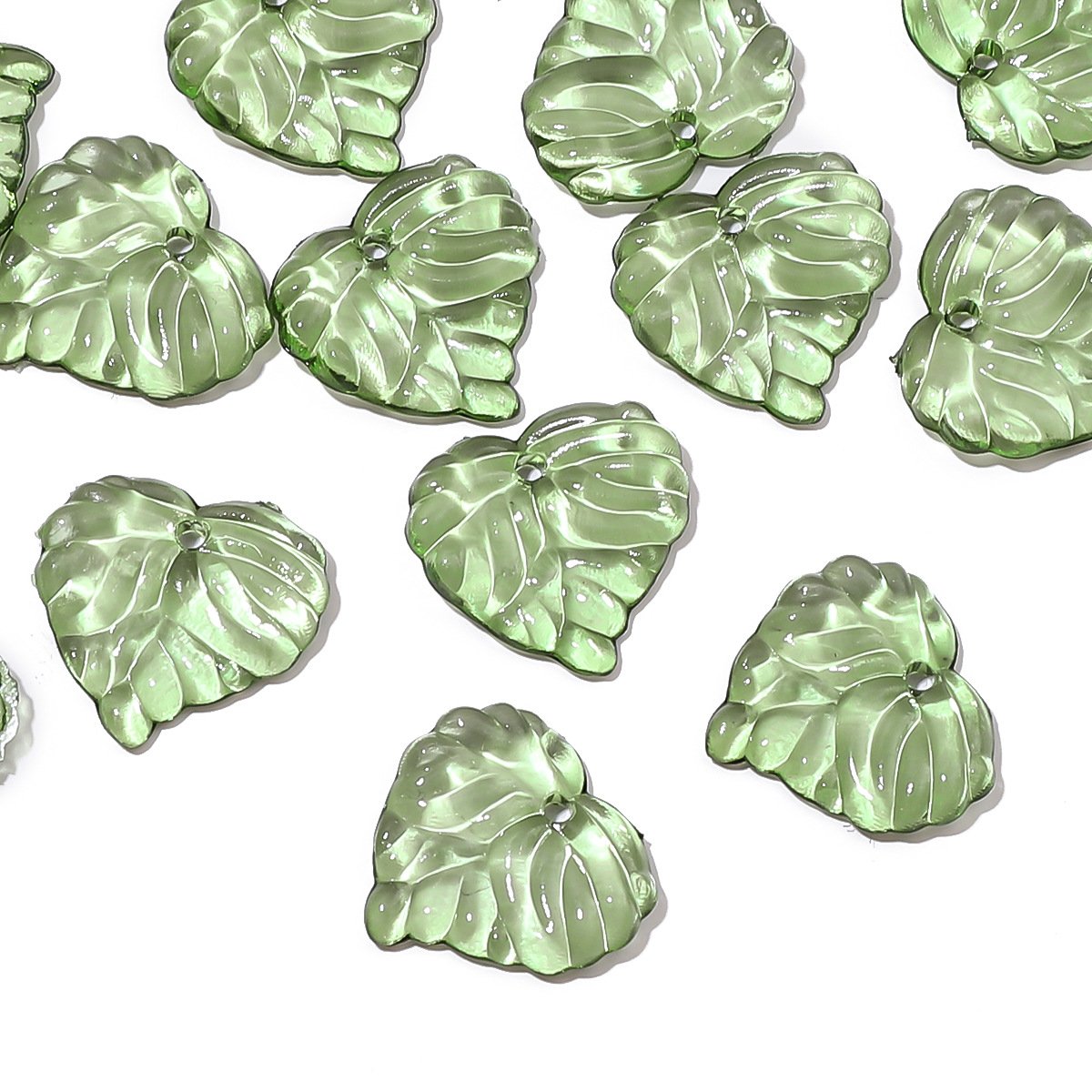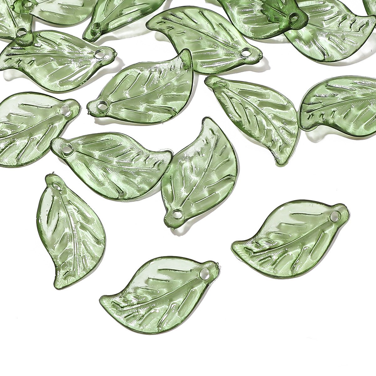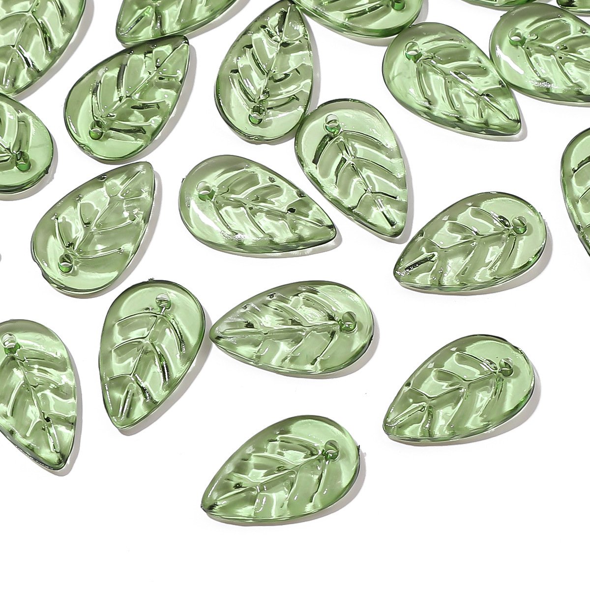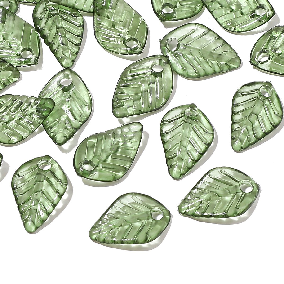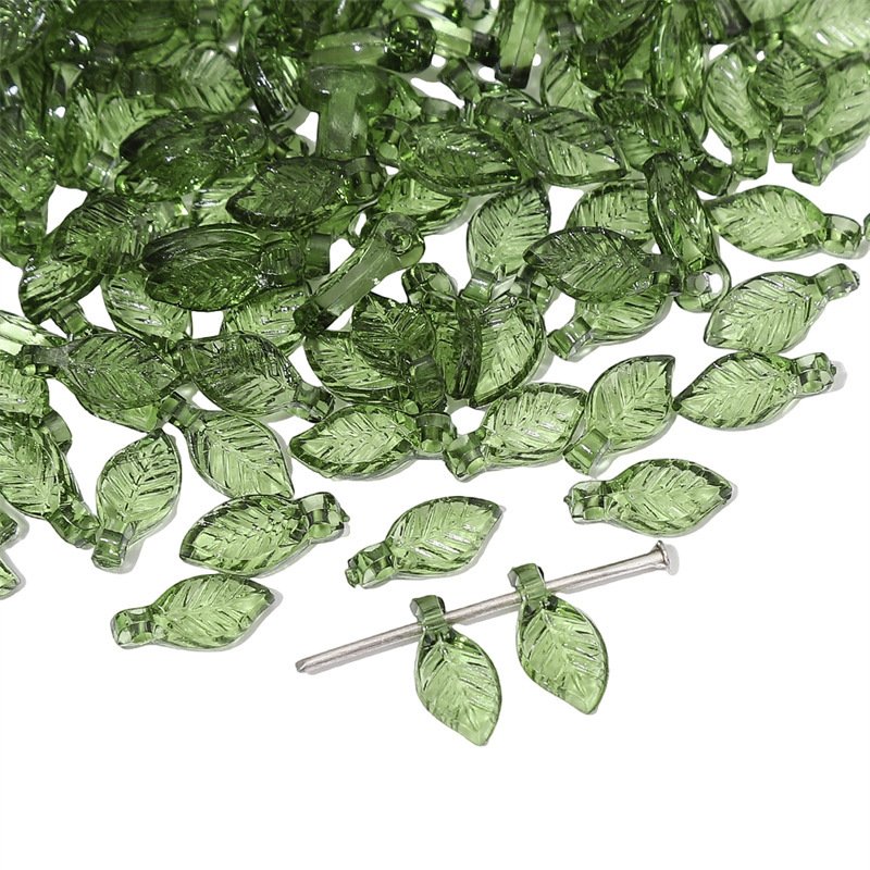 100pcs/lot Acrylic Green Leaf Beads for Jewelry Making, Mini Tree Leaf Shaped Loose Beads for DIY Necklace and Earrings