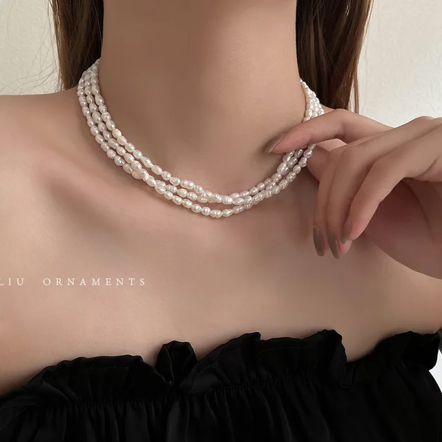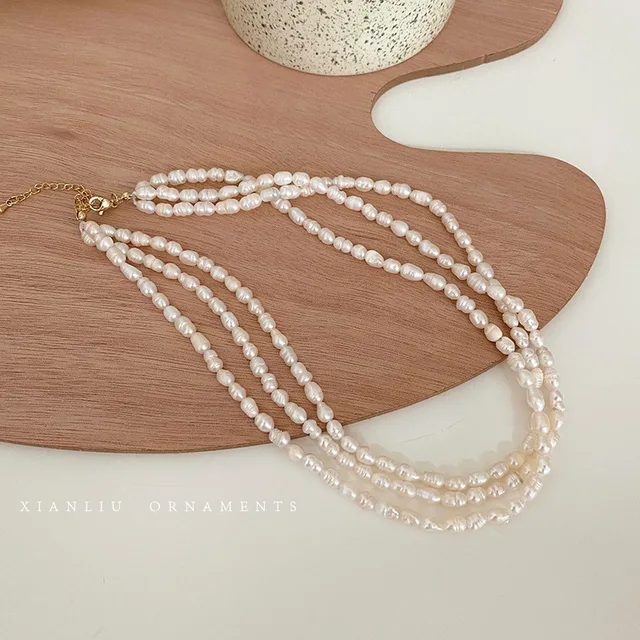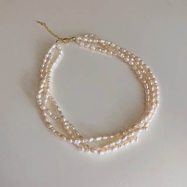 100% Natural Baroque Freshwater Pearl 14K Gold Filled Female Three Layers Chokers Necklace Jewelry Chains Gifts