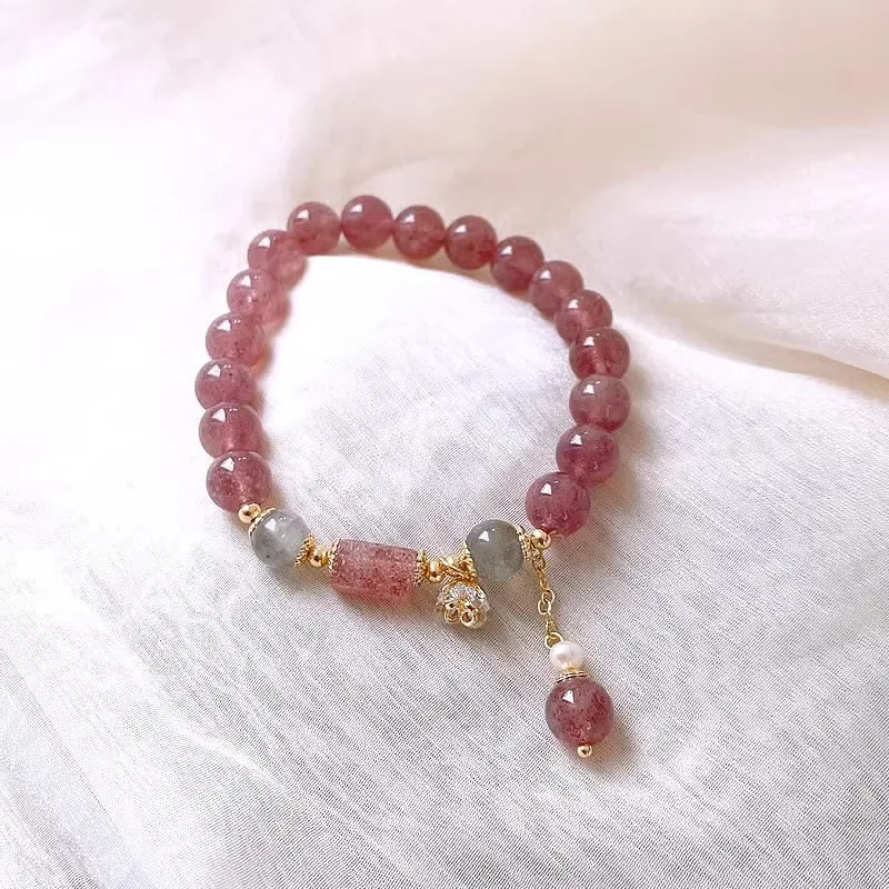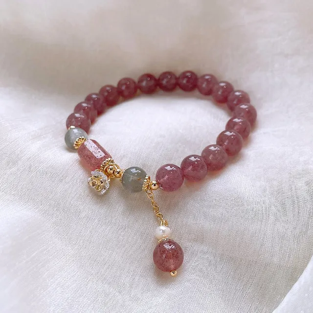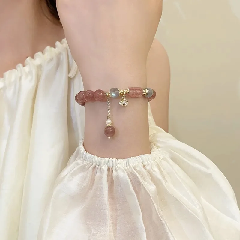 Best Sell Elegant Natural Strawberry Quartz & Moonstone 14K Gold Filled Female Bracelet Jewelry For Women Birthday Gifts Cheap