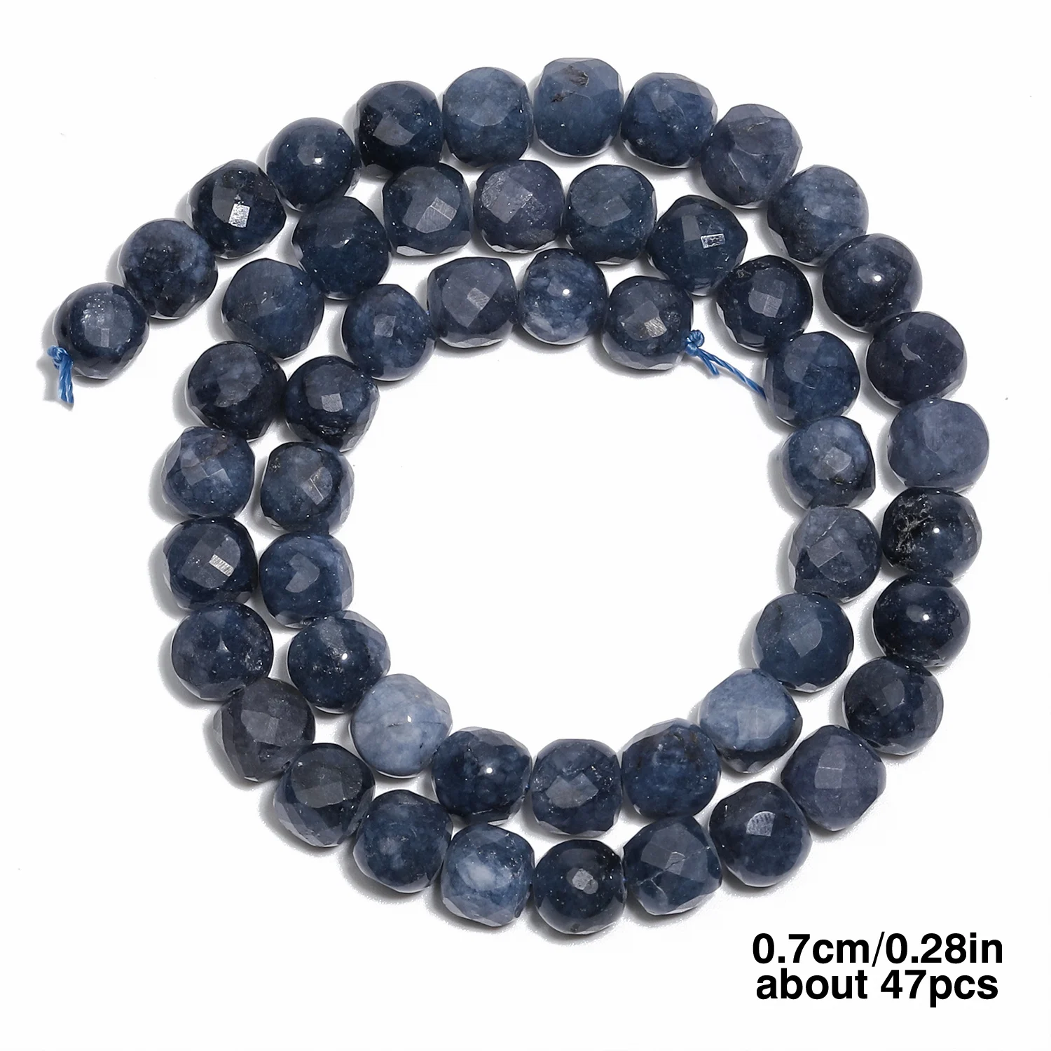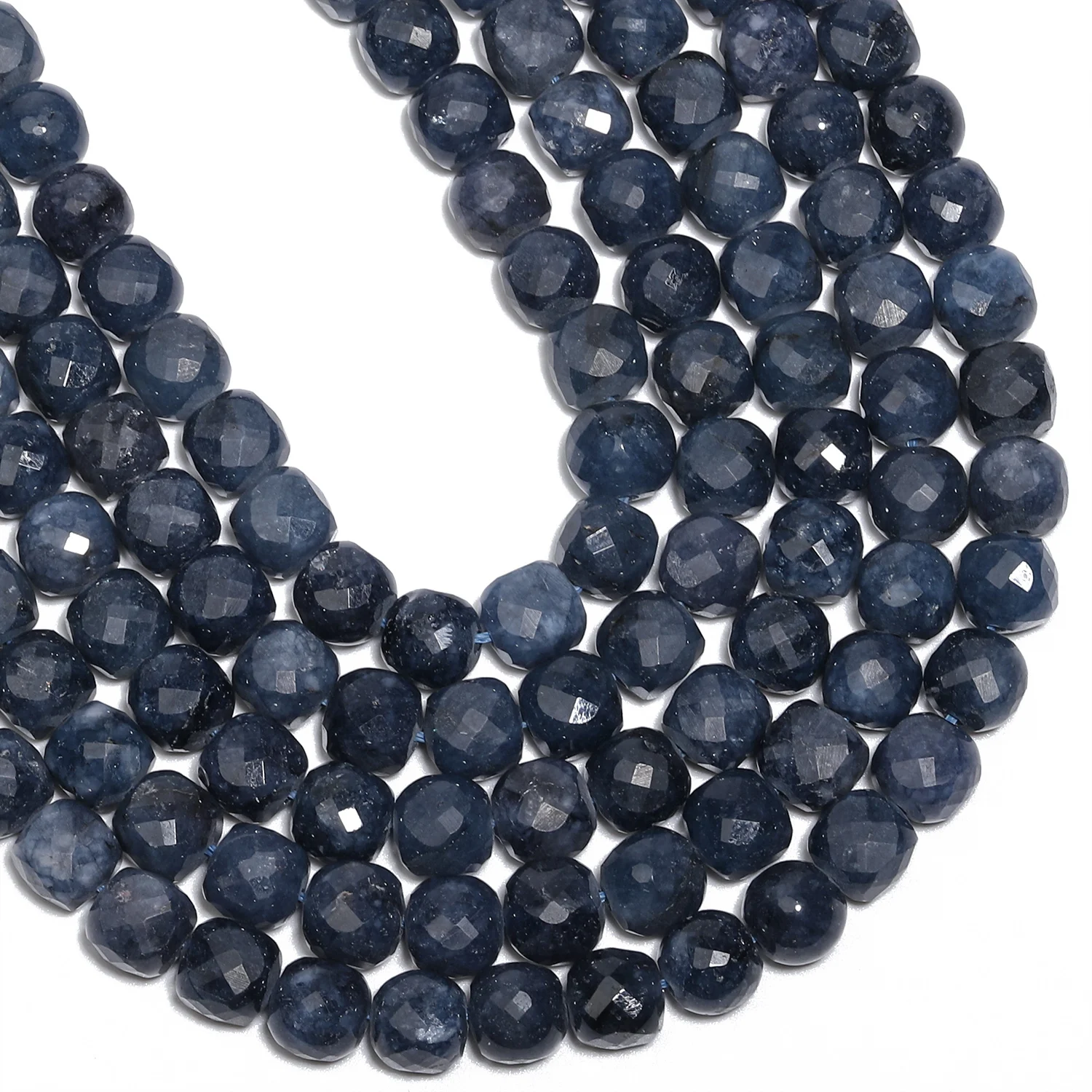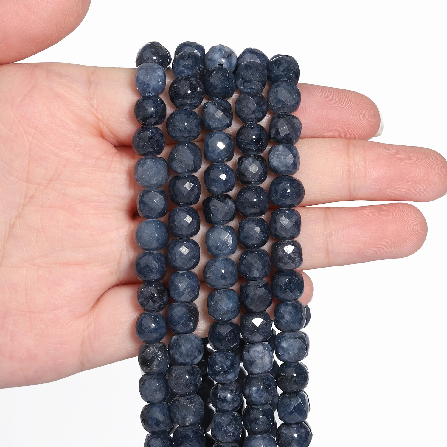 Blue Sapphires Jade Beads 7-8mm Faceted Square Cube Geometric Shape Loose Beads for Jewelry Making Diy Accessories