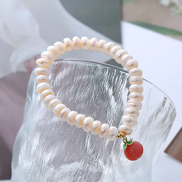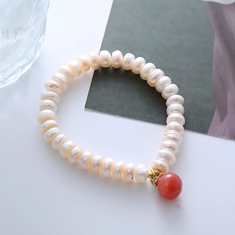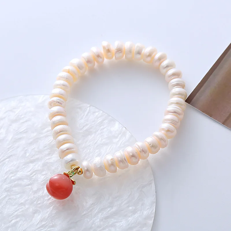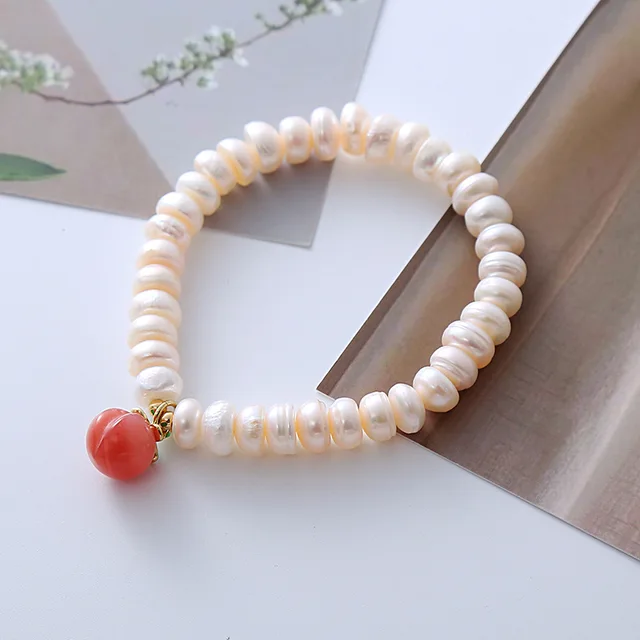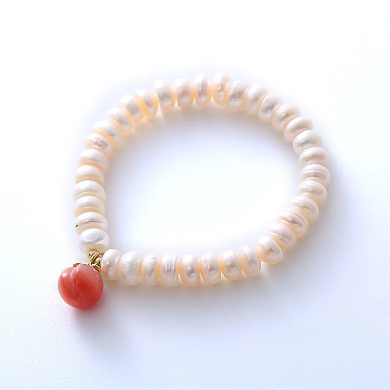 Elegant Honey Peach Design 100% Natural Freshwater Pearl & Agate Stone 14K Gold Filled Female Beads Chain For Women Bracelet