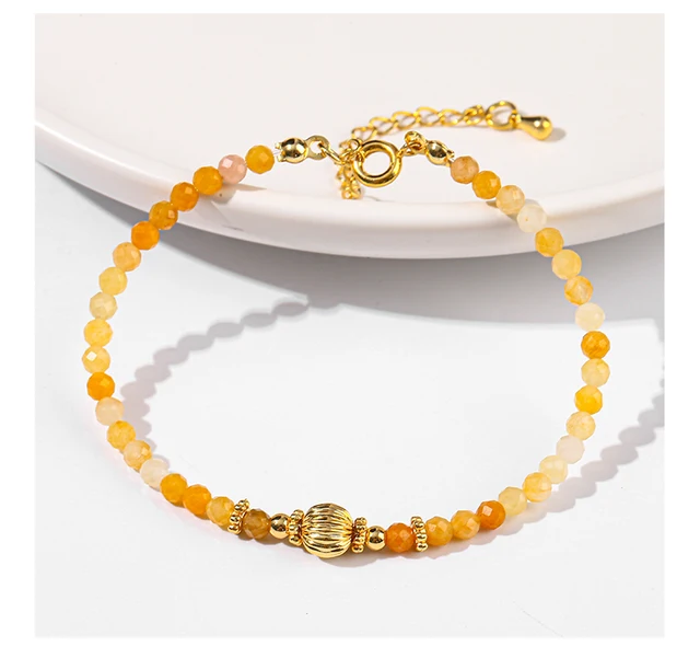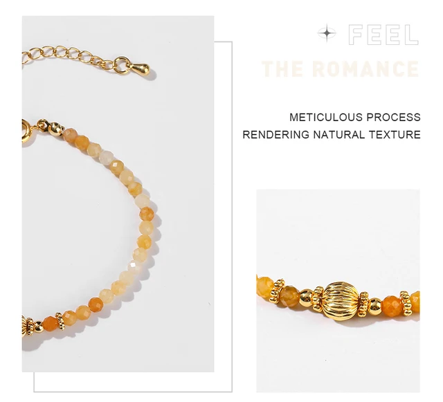 Faceted Natural Stone Beaded Bracelet Women Bohe Style With 18k Gold Plated Stainless Steel Spacer Beads Healing Jewelry Gift