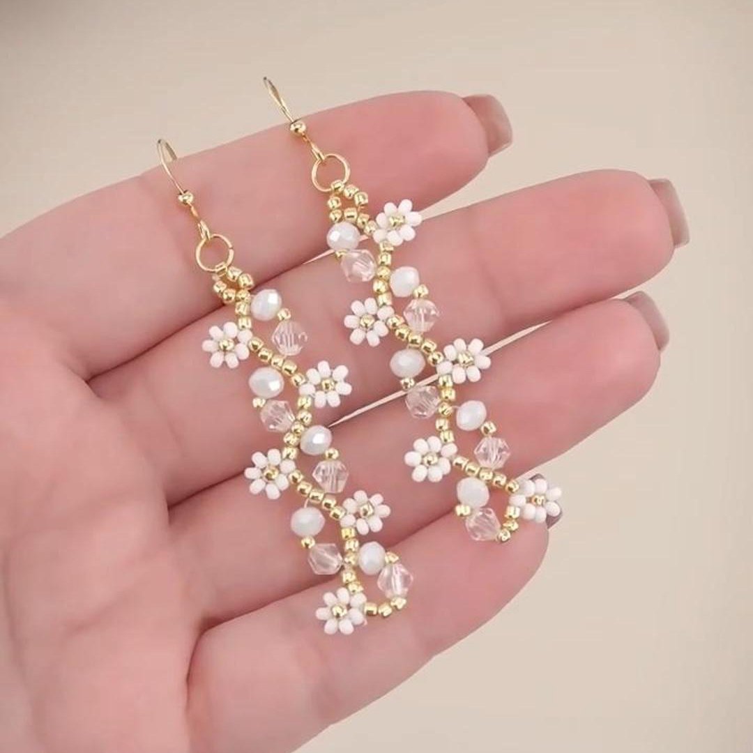 Floral Vine Earrings Material kit Seed Beads+Line+Hooks