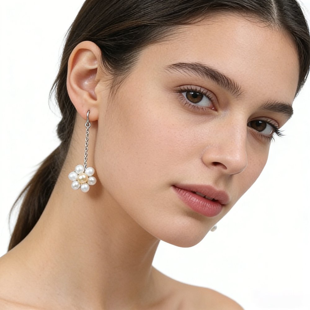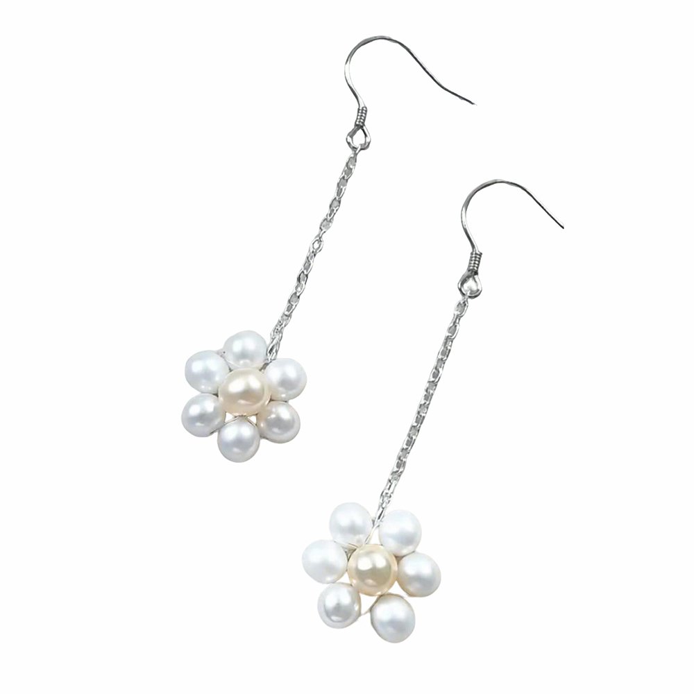 Flower Pearls Earrings Natural Freshwater Pearls Handmade S925 Silver Accessories Long Chain Pendant Earrings Jewelry DIY