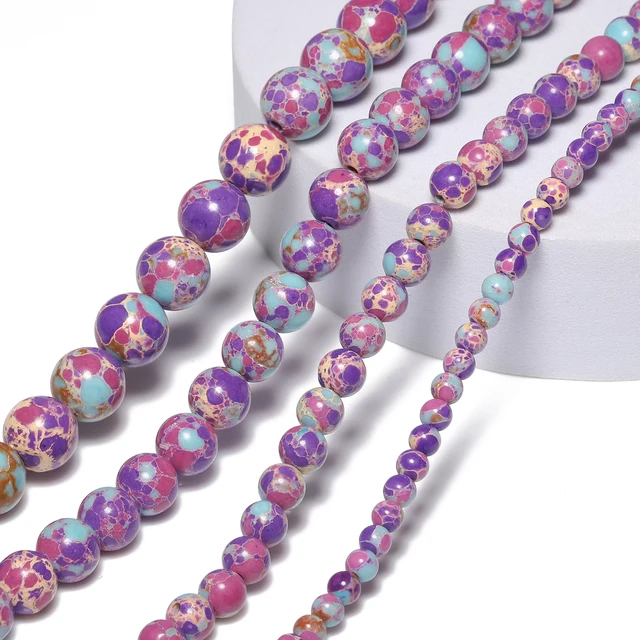 Flower Purple Sea Sediment Jasper Stone Beads 4-10mm Round Loose Spacer Beads for Jewelry Making Beadings Crafts Accessories