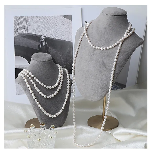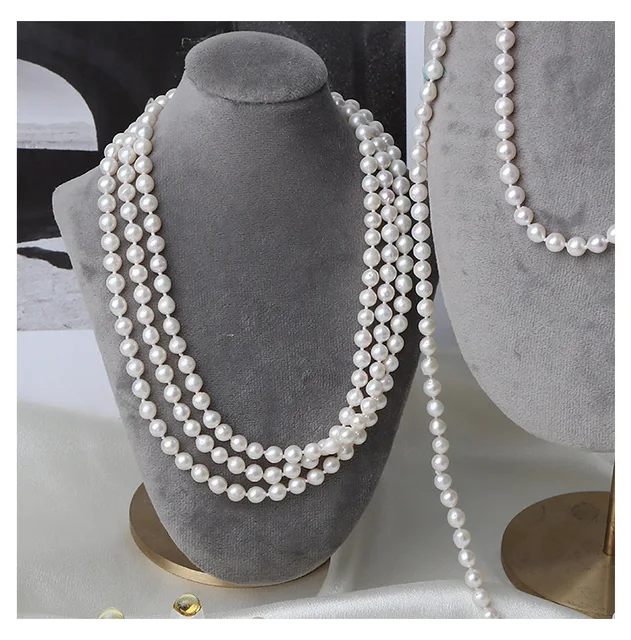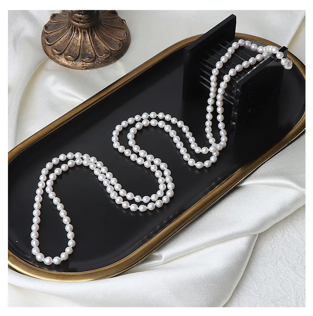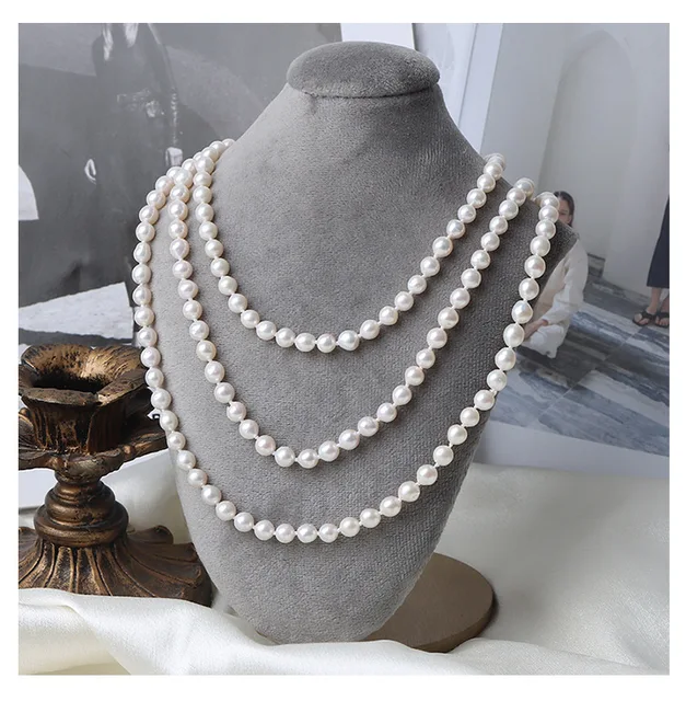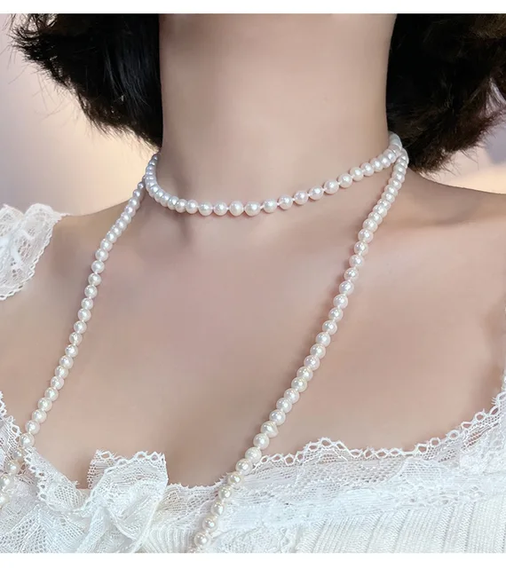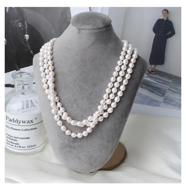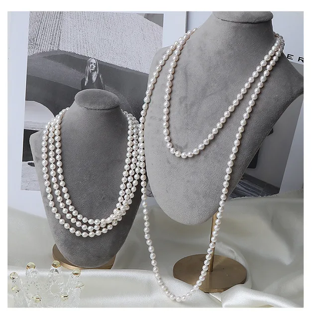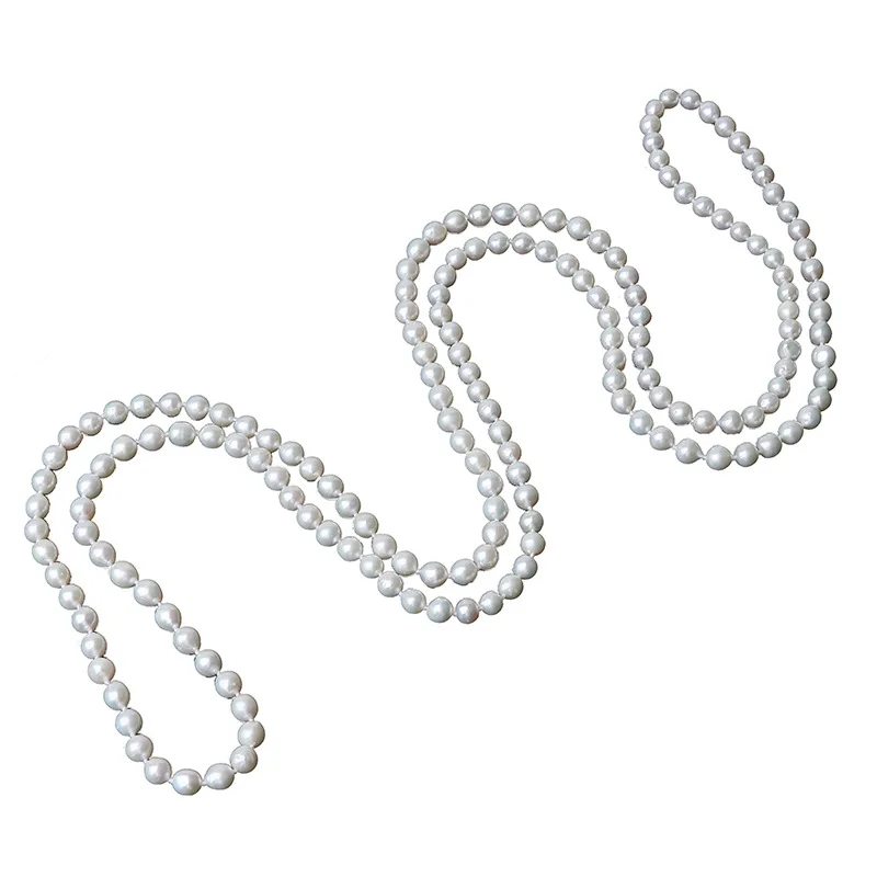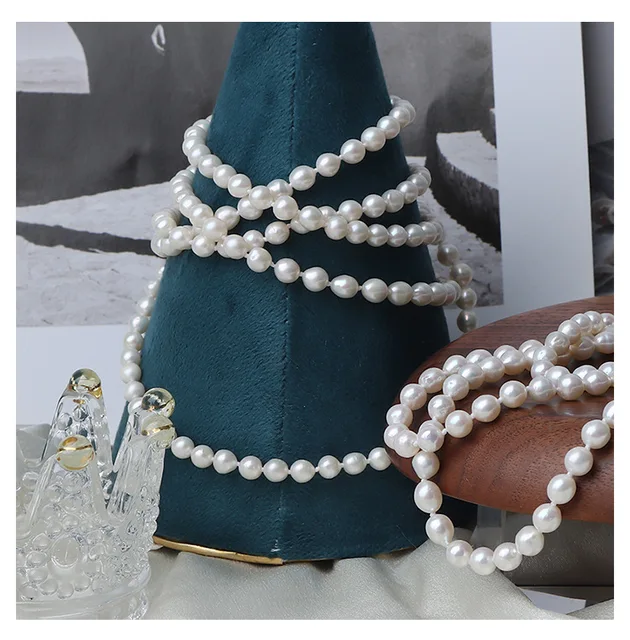 French Retro 5-6mm Natural Freshwater Pearl Sweater Chain 120cm Long Necklace Double Layer Each Knot