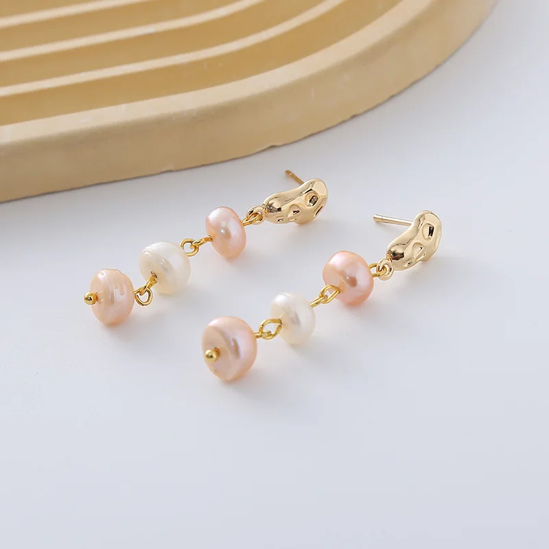 High Quality 100% Natural Freshwater Pearl 14K Gold Filled Female Tassels Stud Earrings Anti Allergy Birthday Gifts