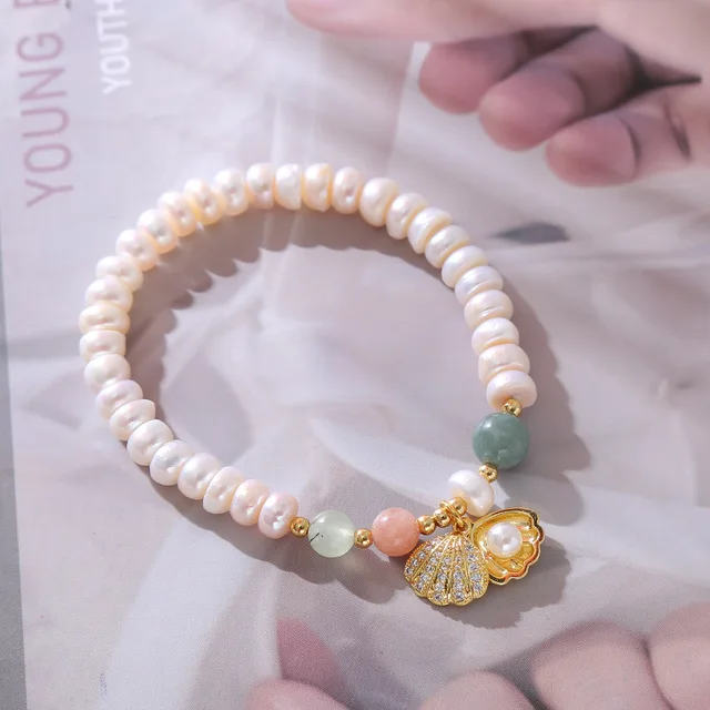 High Quality Elegant Shell Design Natural Freshwater Pearl 14K Gold Filled Female Charm Bracelet Wholesale Jewelry For Women