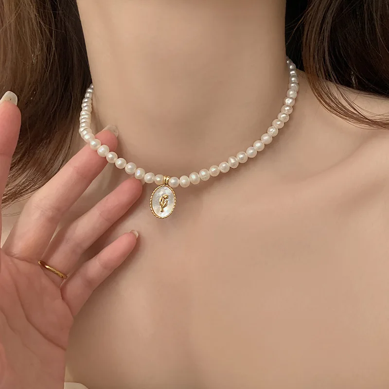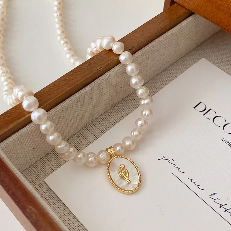 1 review for High Quality Trendy Tulips Flower Natural Baroque Freshwater Pearl 14K Gold Filled Ladies Pendant Necklace For Women Mother Gift