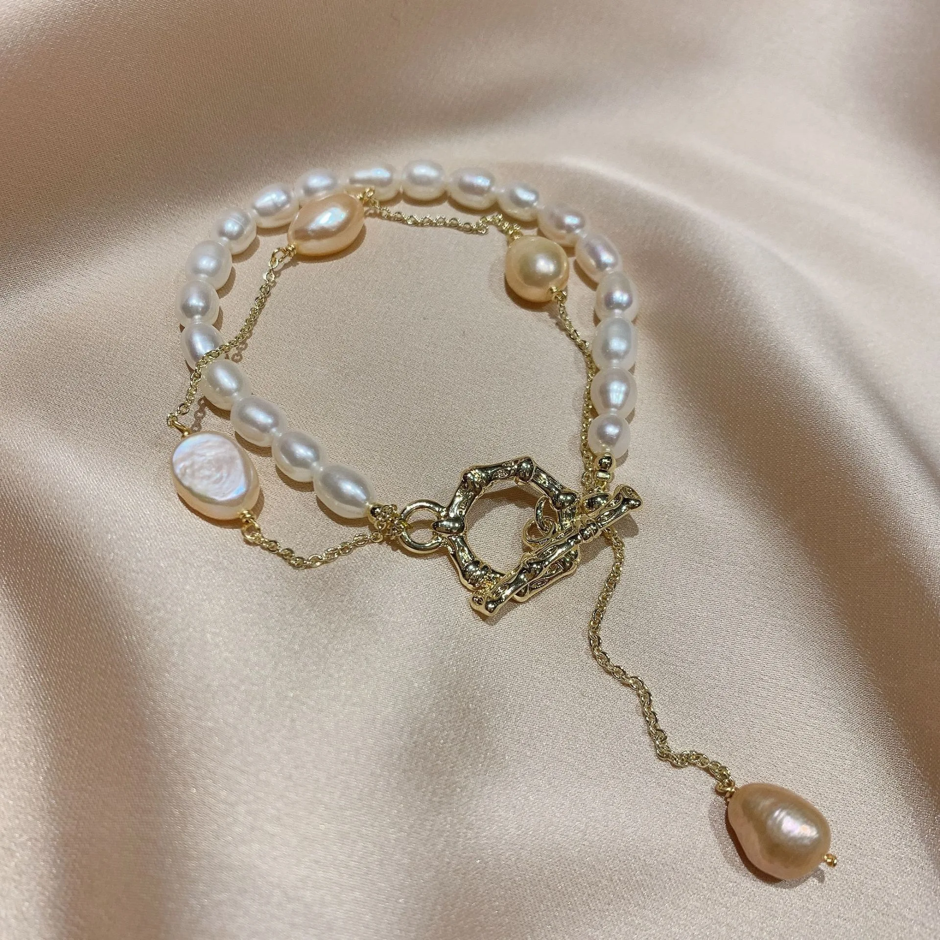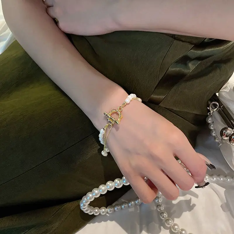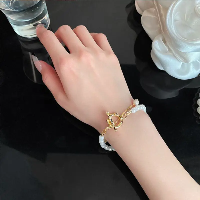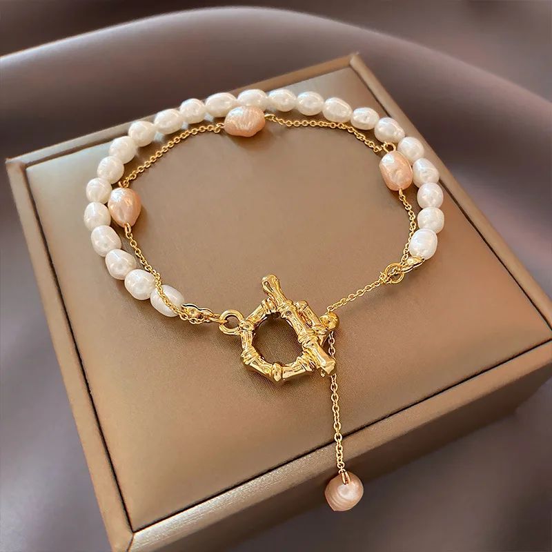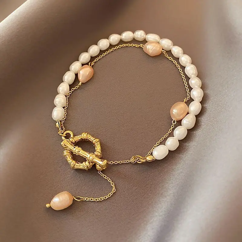 Hot Sell Fashion Simple Design Natural Freshwater Pearl 14K Gold Filled Ladies Double Bracelet Jewelry For Women Gifts No Fade