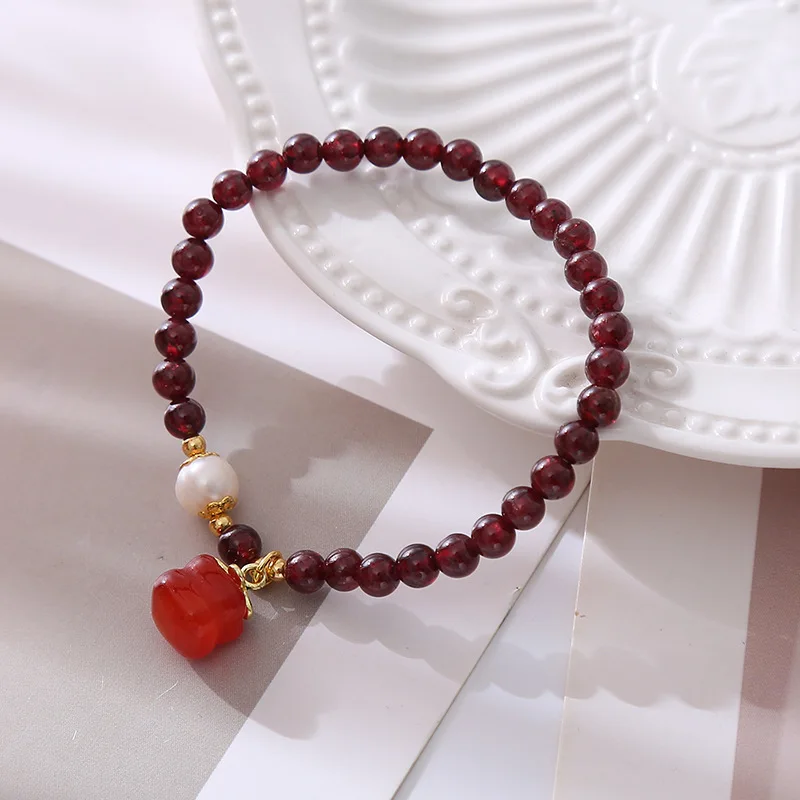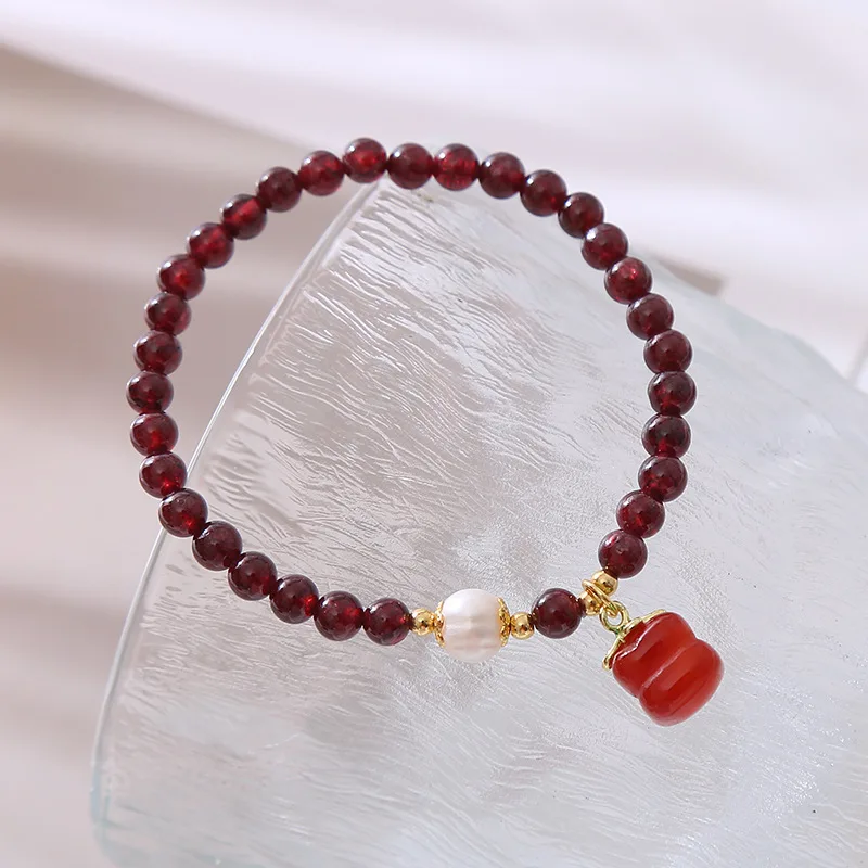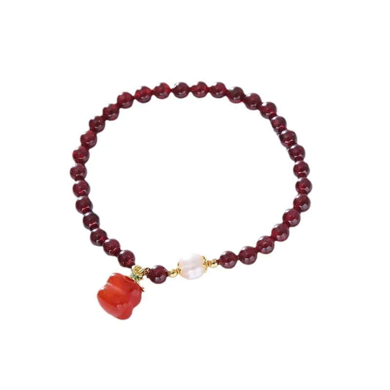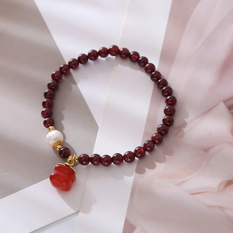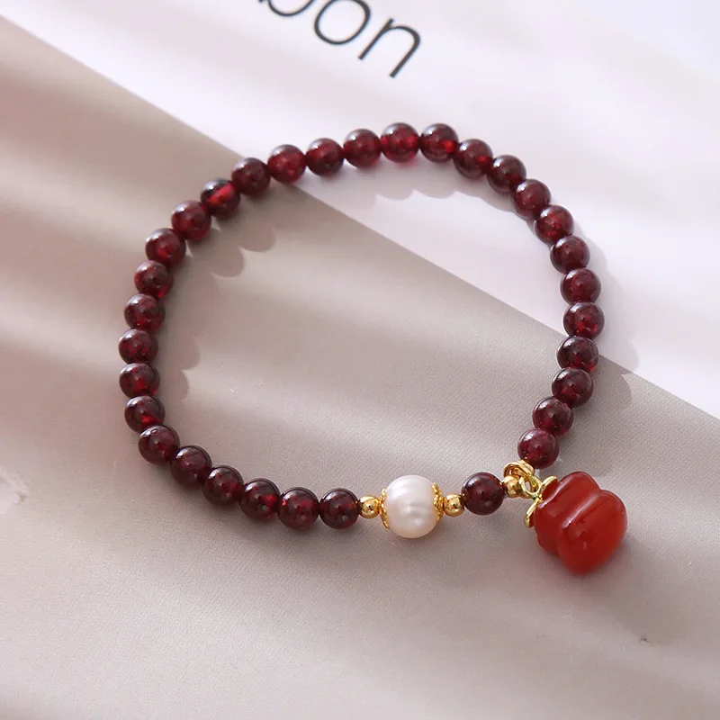 Hot Sell Natural Garnet & Freshwater Pearl & Agate 14K Gold Filled Female Beads Chain Bracelet Jewelry For Women Birthday Gifts