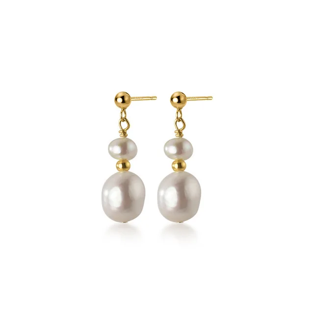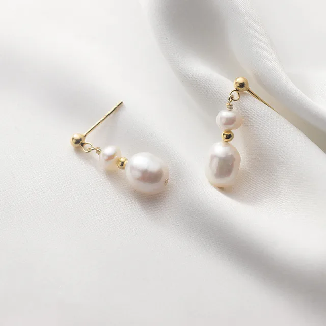 Simple Design 100% Baroque Freshwater Pearl 14K Gold Filled Female Tassels Stud Earrings Jewelry Not Allergic