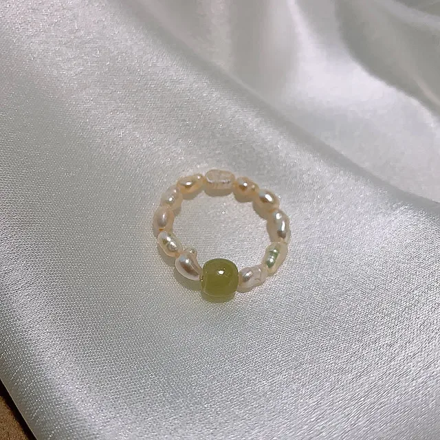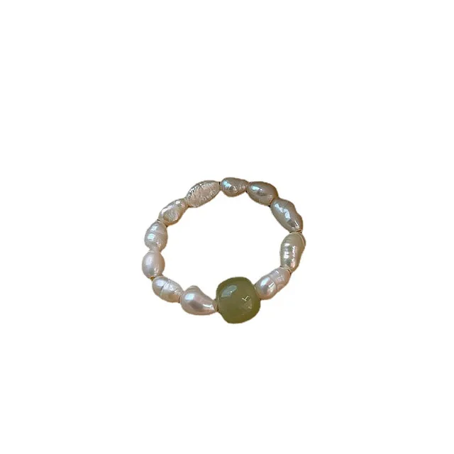 Hot Sell Trendy Natural Freshwater Pearl & Jade Stone Ladies Ring Jewelry For Women Birthday Gifts
