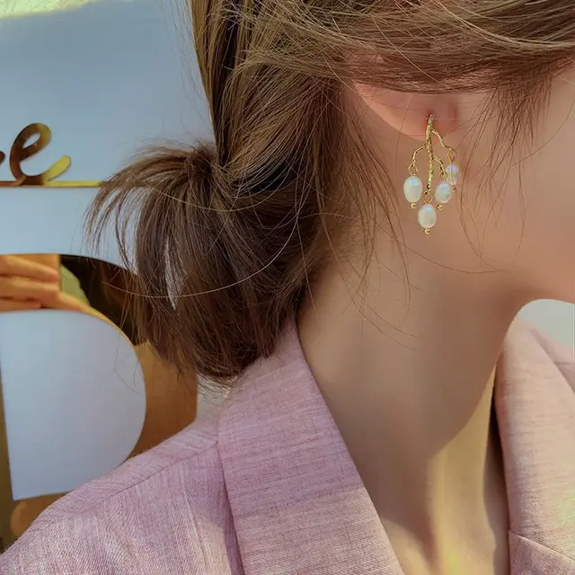 Individual Tree Branch Design Natural Freshwater Pearl 14K Gold Filled Ladies Tassels Stud Earrings Jewelry For Women Gifts