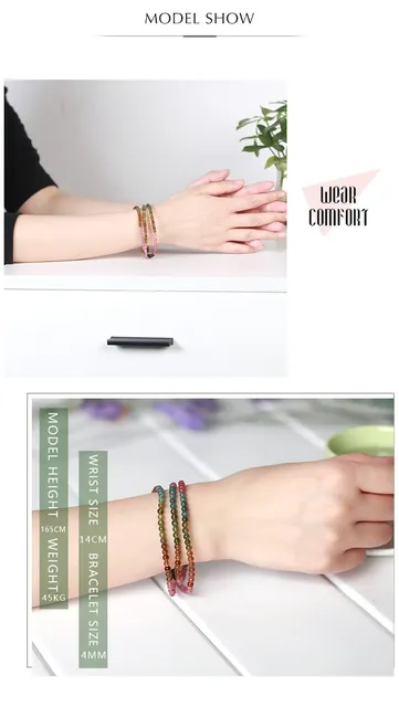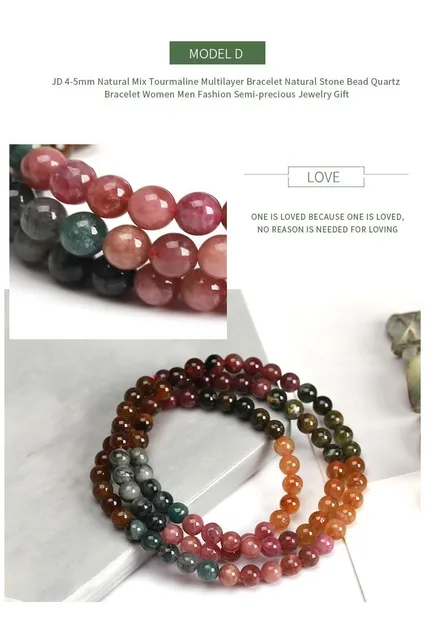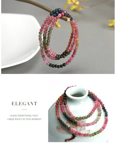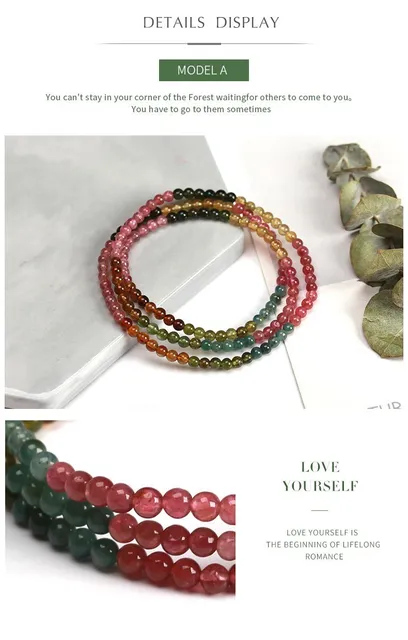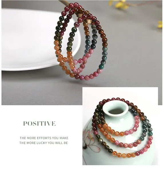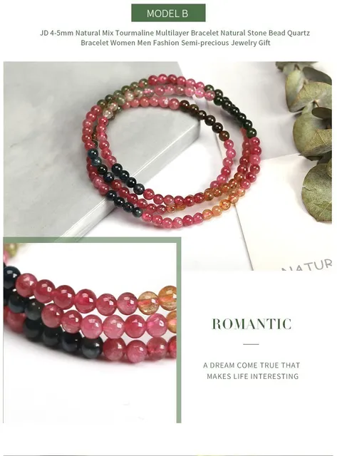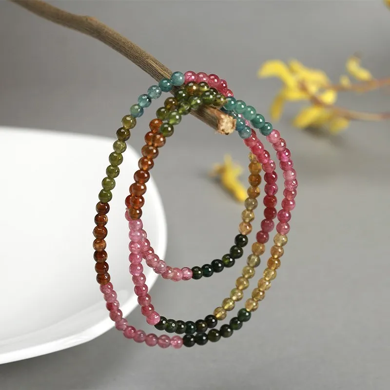 3-4mm Natural Mix Tourmaline Multilayer Bracelet Natural Stone Bead Quartz Bracelet Women Men Fashion Semi-precious Jewelry