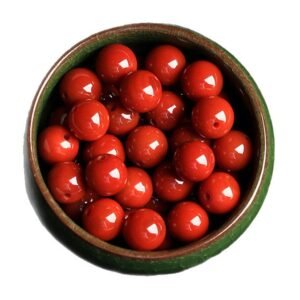 The material kit includes: 80pcs 4mm beeswax beads, 1pc 8mm beeswax bead, 1pc 4mm red agate, 4pcs 3mm turquoise beads, 1 meter beading line, 1pc beading needle.