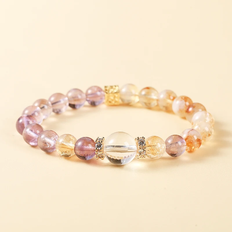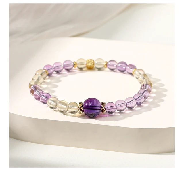 Natural Amethyst Lucky Bead Bracelets Romantic Elegant Healing Crystal Handmade Stretch Bangles Couple Wrist Jewelry for Women