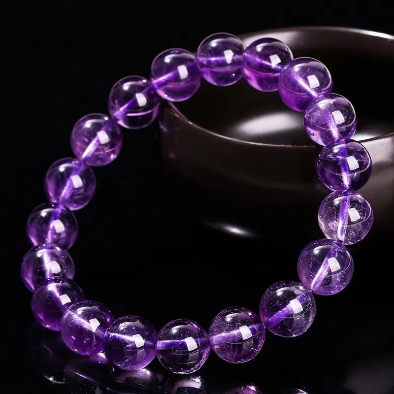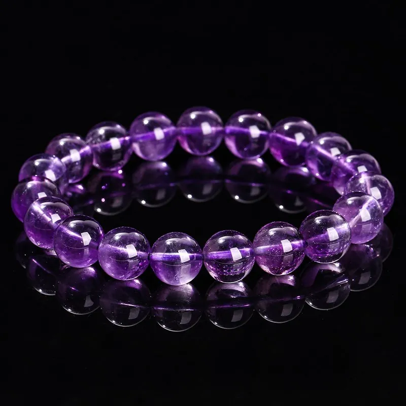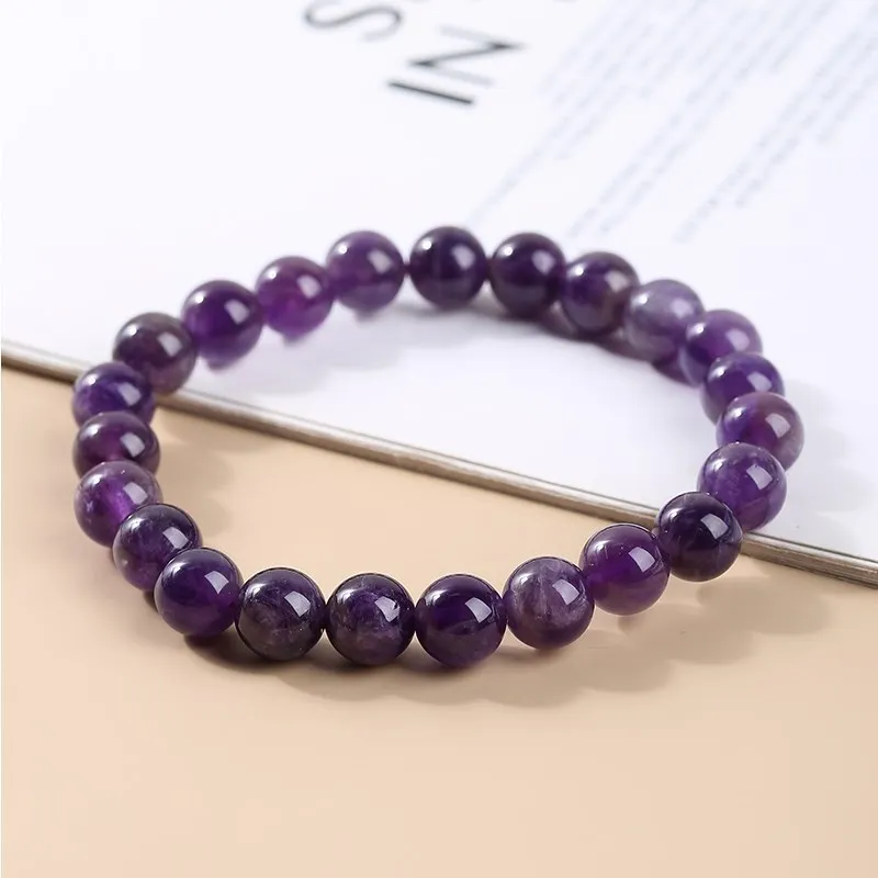 Natural Amethyst Quartz Bead Bracelets Women Reiki Healing Energy Purple Crystal Stretch Bangles Yoga Jewelry Couple Gifts