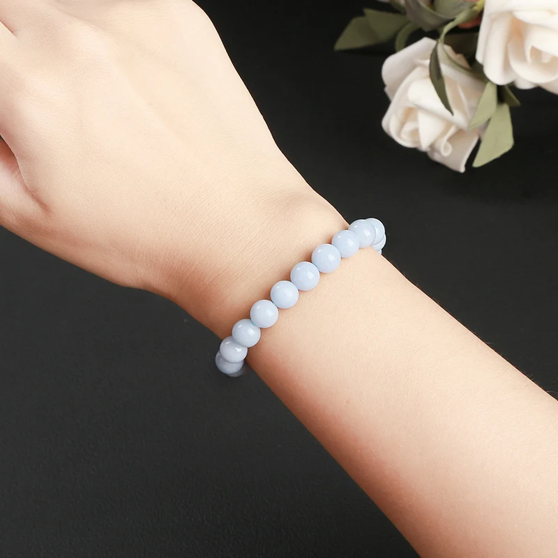 Natural Angel Stone Round Bead Bracelets Women Men Trendy Singel Circle Handmade Stretch Bangles Reiki Healing Friend Gifts