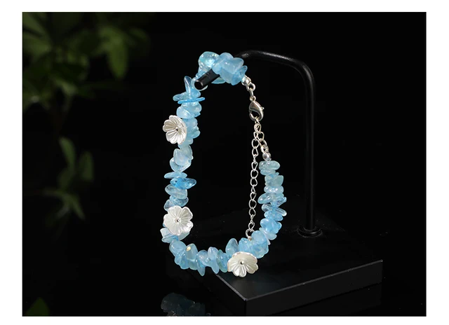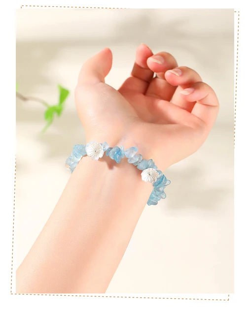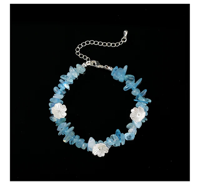 Natural Aquamarine Chip Stone Chain Bracelet Women Sweet Shell Flower Healing Bracelets Girlfriends Birthday Jewelry Gifts