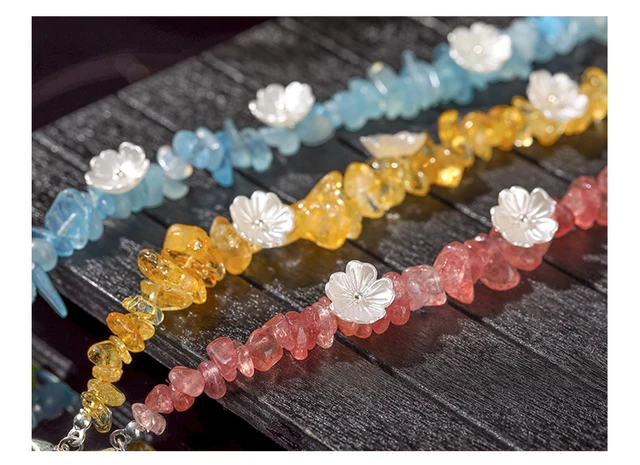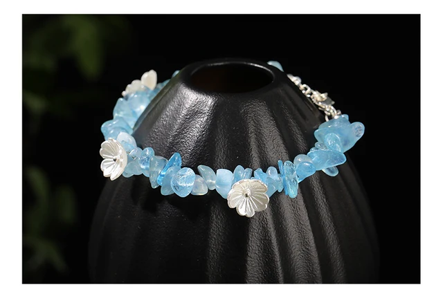Natural Aquamarine Chip Stone Chain Bracelet for Women Sweet Shell Flower Healing Bracelets Girlfriends Birthday Jewelry Gifts