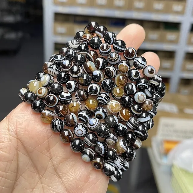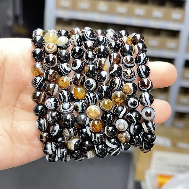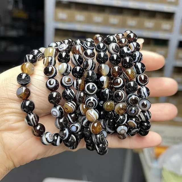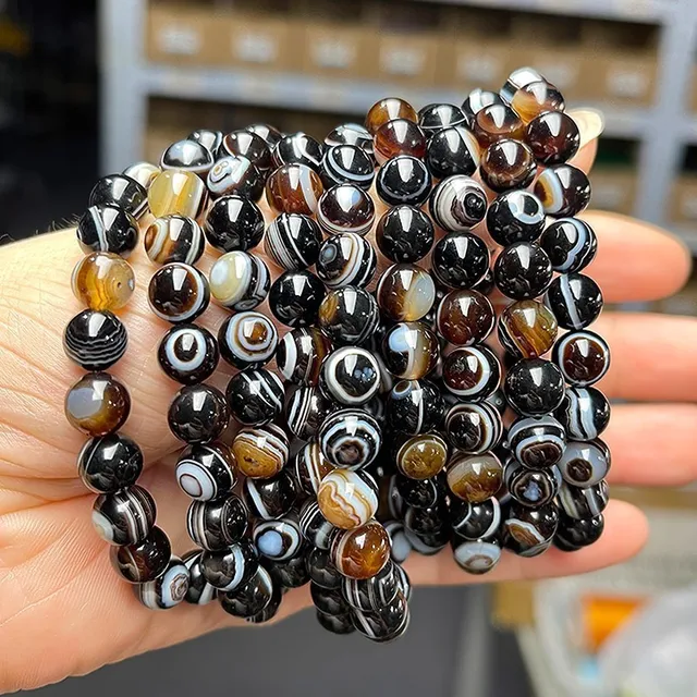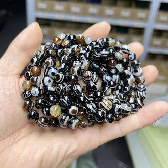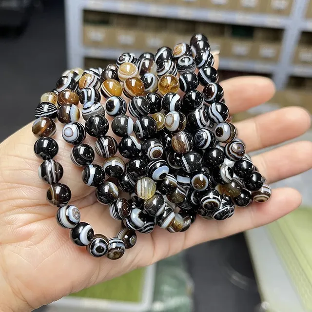 Natural Black Coffee Agate Stripes Onyx With Eyes Bead Bracelets Women Men Charm Reiki Healing Energy Yoga Meditation Jewelry