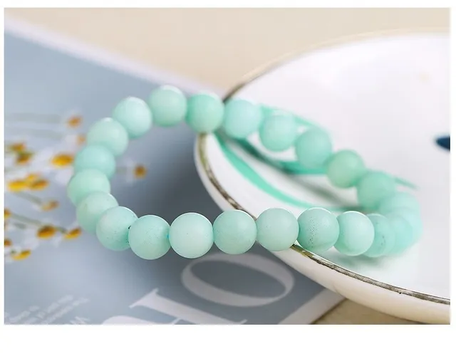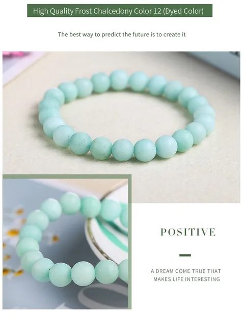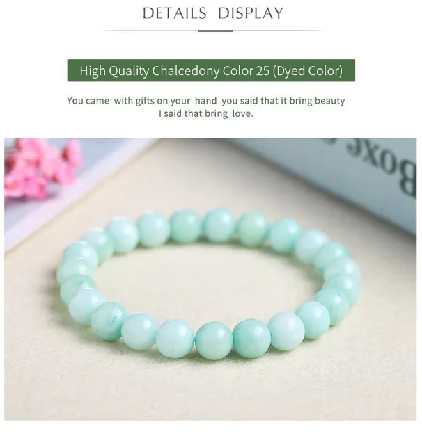 Natural Blue Chalcedony Aquamarine Angelite Amazonite Color Strand Beads Stone Bracelet Smooth Frost Round Loose Bead Bangles