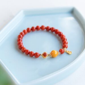 Natural Chinese Nanhong Beeswax Bracelet Gold-plated S925 Silver Clover Handmade Jewelry DIY