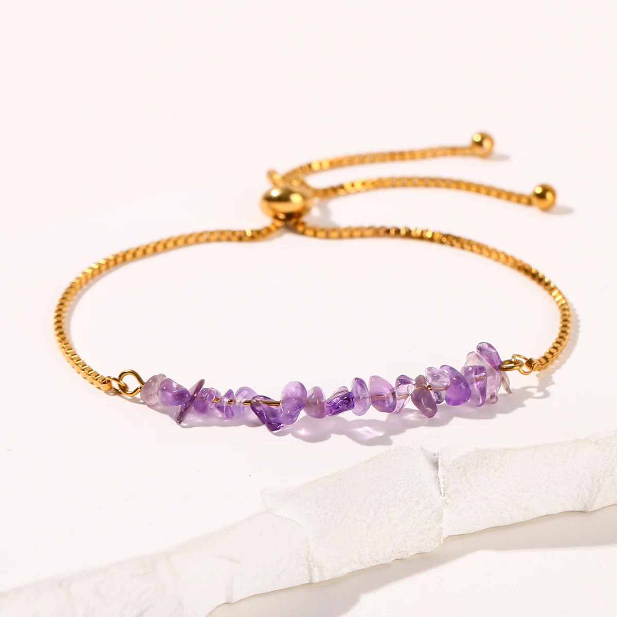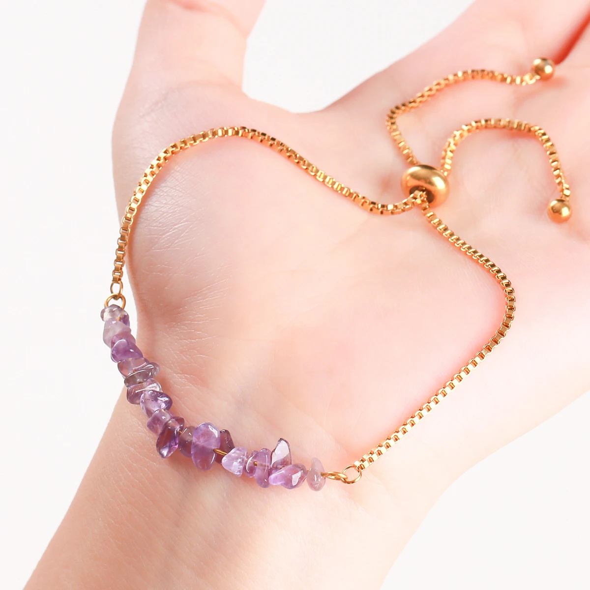 Natural Chip Stone Crystal Bracelet Amethysts Pink Quartzs Healing Stainless Steel Bracelet for Women Simple Yoga Jewelry