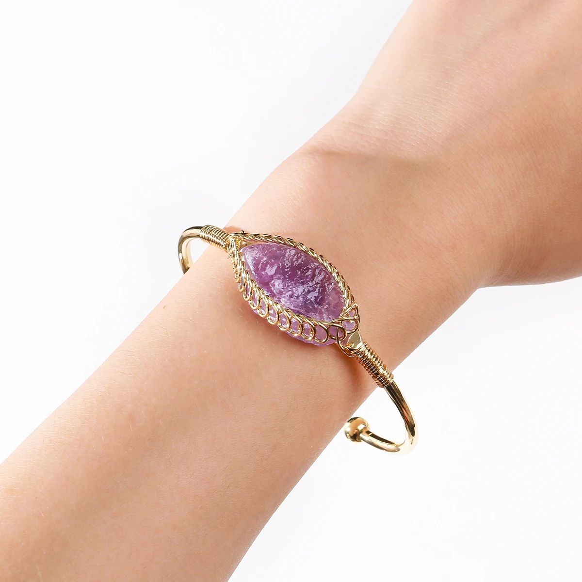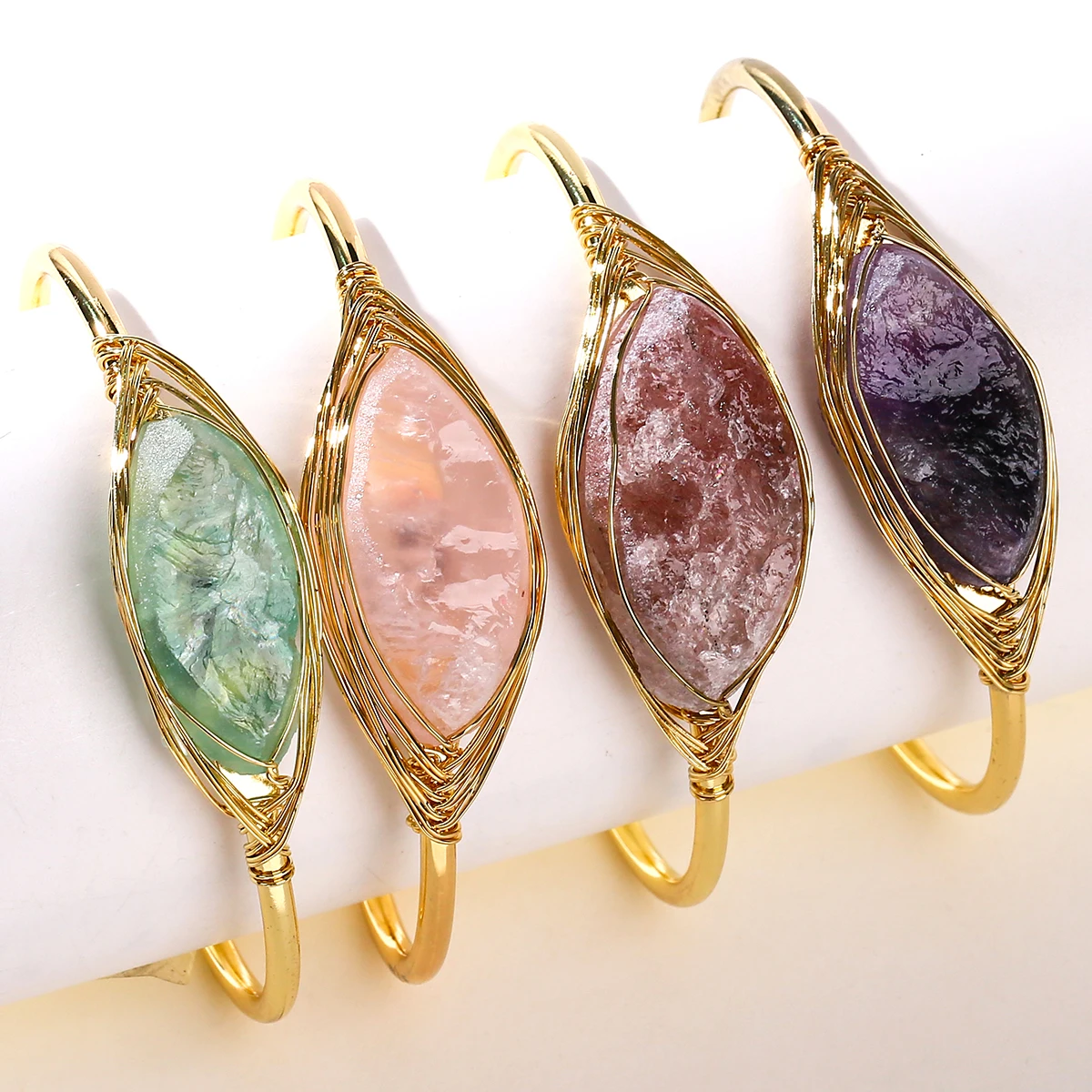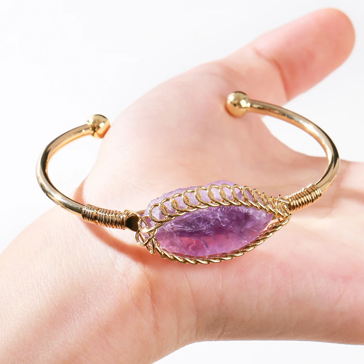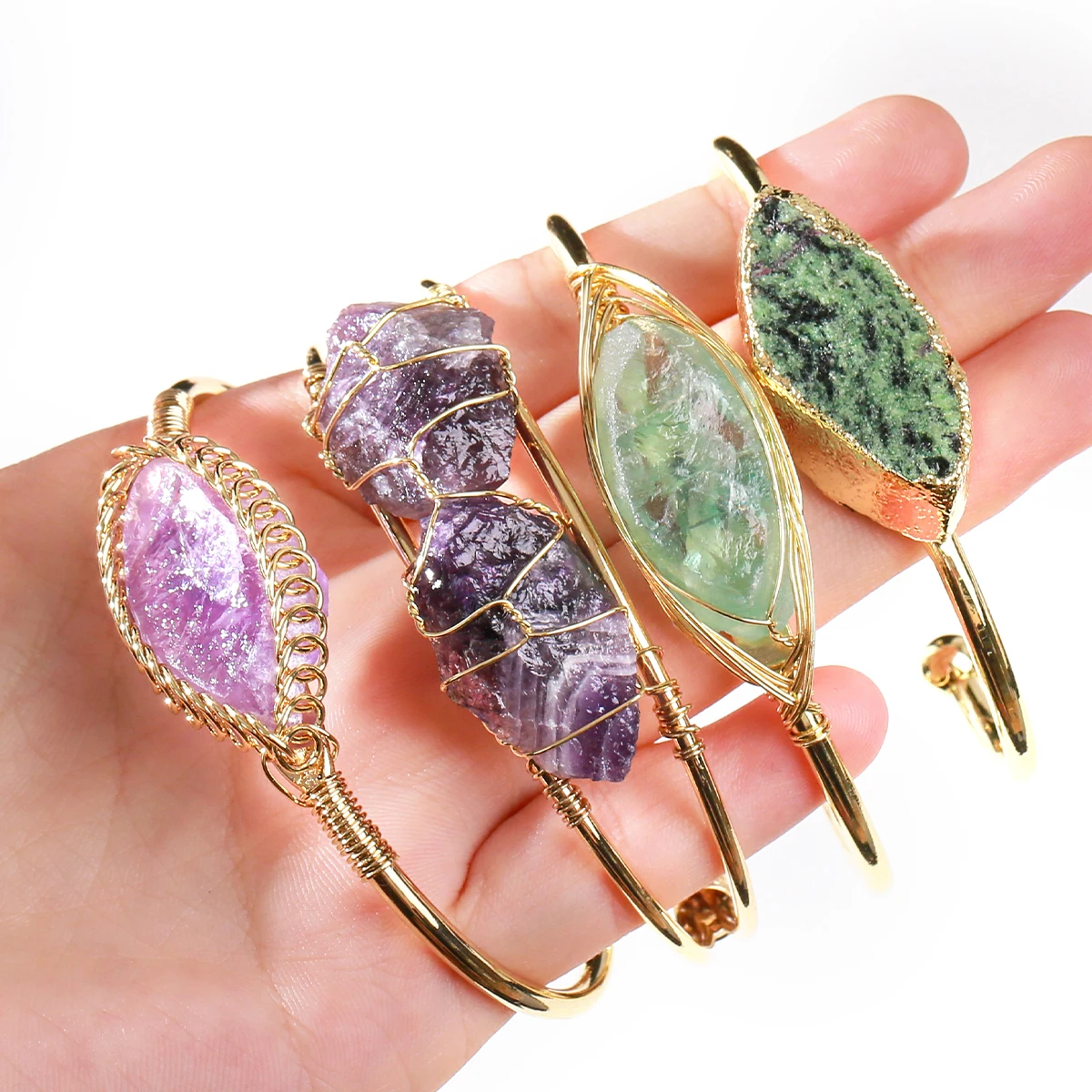 Natural Crystal Raw Gemstone Inlaid Bracelet Hand Woven Copper Wire Open Bracelet Fashion Match Charm Fashion Jewelry Gifts