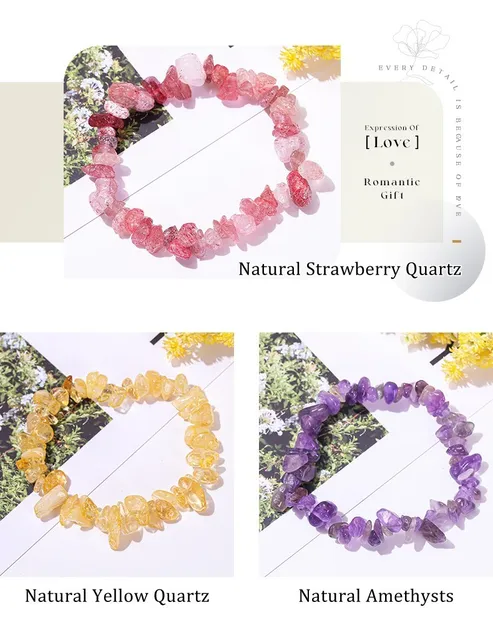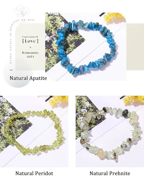 Material: Natural Pink Quartz/White Quartz/Seven Chakras/Strawberry Quartz/Yellow Quartz/Amethysts/Smoky Quartz/Multicolor Fluorite/Gold Rutilated Quartz/Violet Amethyst/China Red Agate/Black Agate/Gray Agate/India Agate/Wine Garnet/Tourmaline/Mixed Moonstone/5A Ice Gray Labradorite/Ice Blue Moonstone/Aquamarine/Amazonite/Lapis Lazuli/Malachite/Black Line Rhodochrosite/Pink Opal/Apatite/Peridot/Yellow Tiger Eye/Red Jasper/Blue And White Sodalite/Unakite/Mookiate Stone/Dyed Color Red Coral/Dyed Color Blue Turquoise/Green Aventurine/Chalcedony