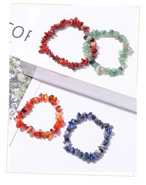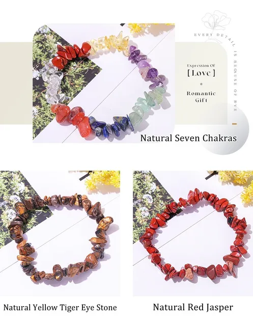 Natural Crystal Stone Seven Chakra Irregular Energy Bracelet Women Men Healing Amethyst Fluorite Chip Strand Bracelet Mineral Jewelry