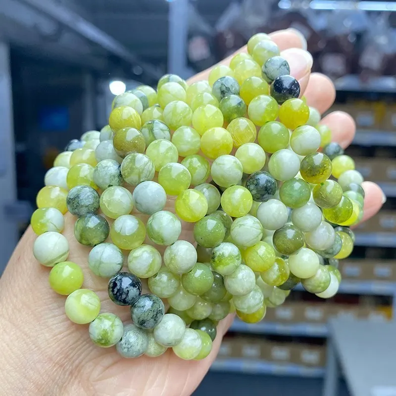 Natural Gemstone Qinghua Flower Jade Bead Bracelets Women Fashion Jewelry Gemstone Gift Handmade Strand Bracelet Wristband Gift