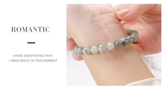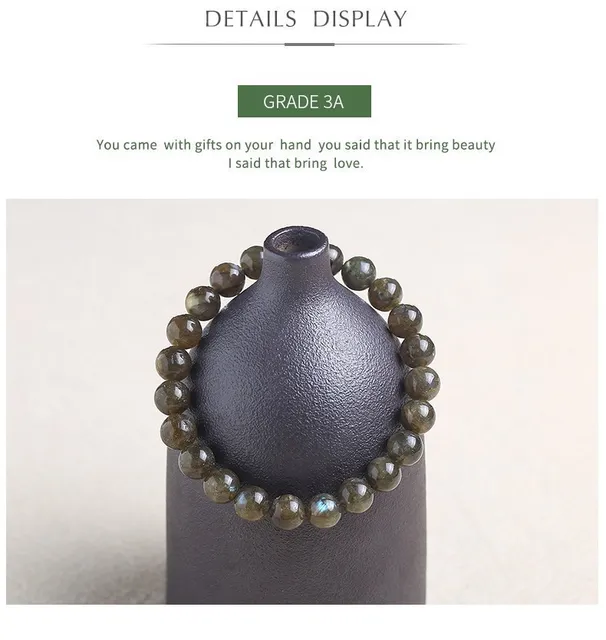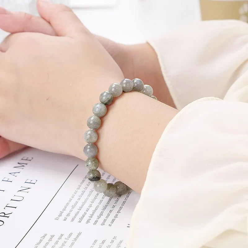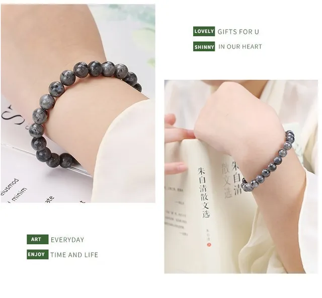 Natural Gemstone Shiny Labradorite Beaded Bracelets Women Men Fashion Jewelry Yoga Energy Round Beads Strand Elastic Bangles