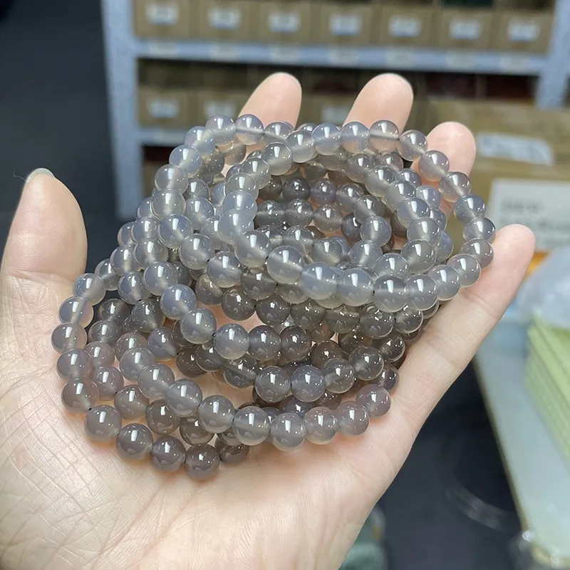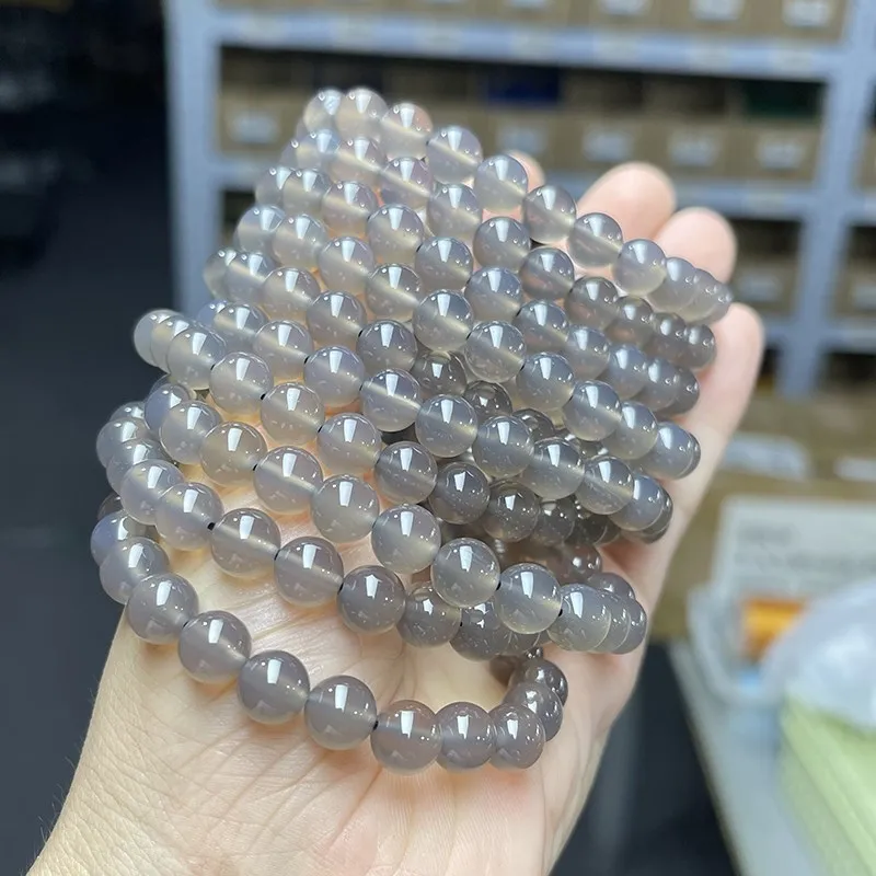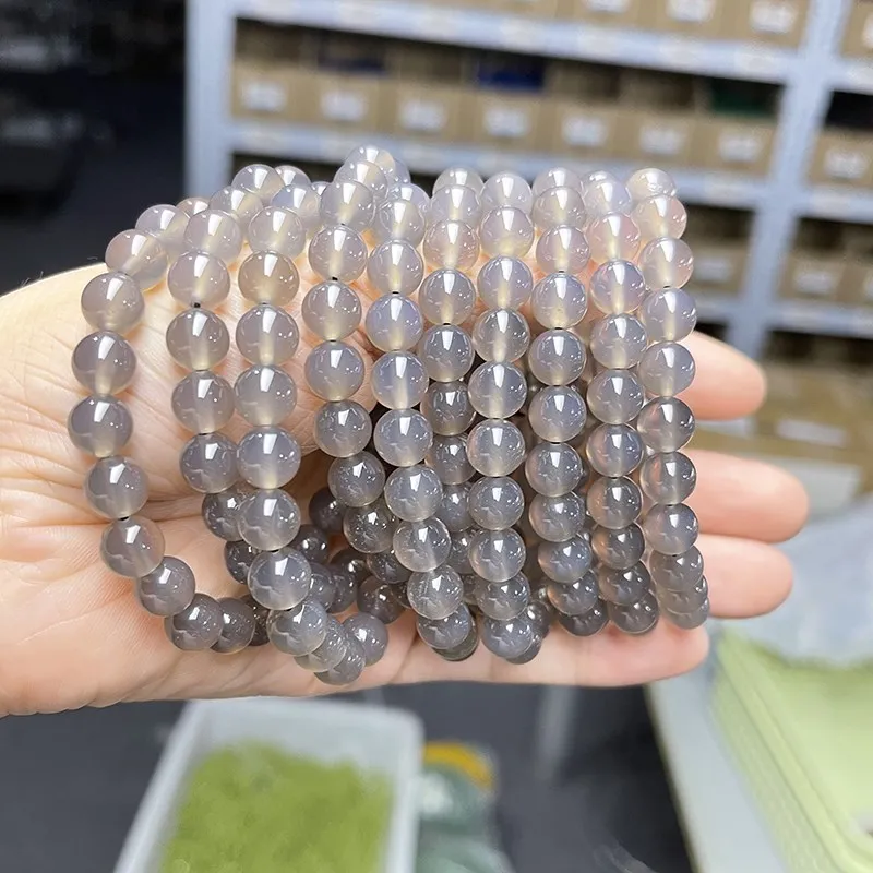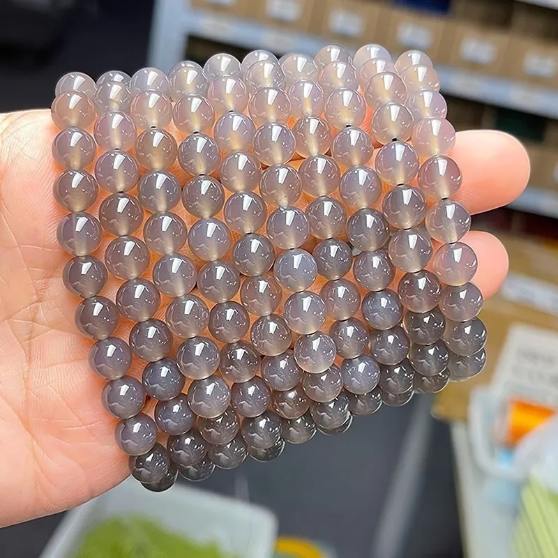 Natural Gray Agate Round Carnelian Bead Strand Bracelets Women Men Fashion Simple Chakra Reiki Healing Yoga Jewerly Gifts