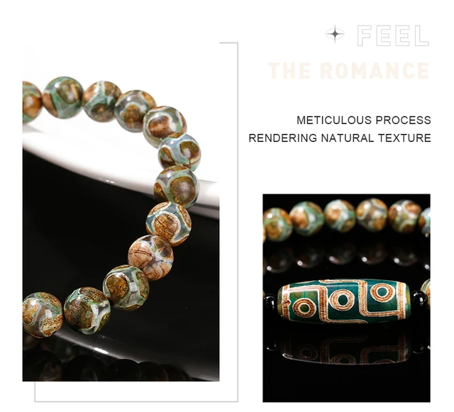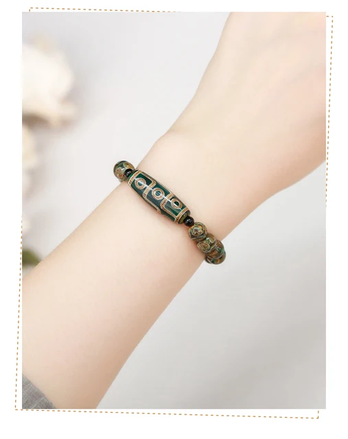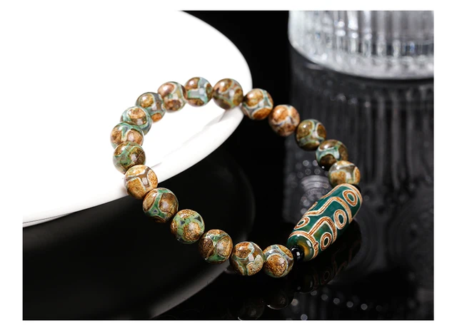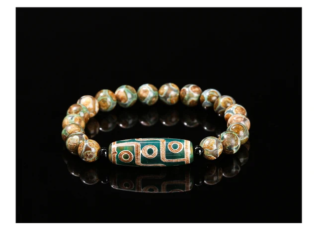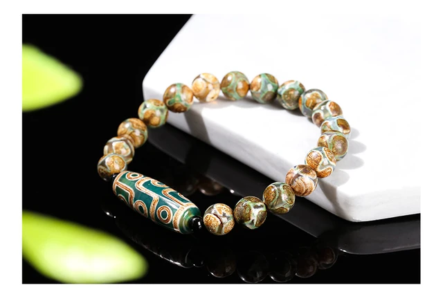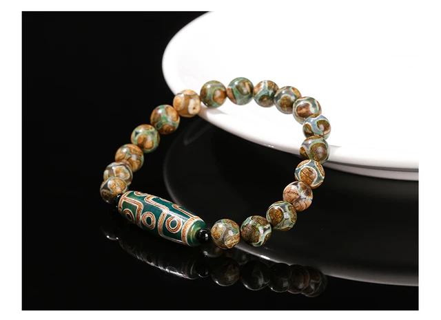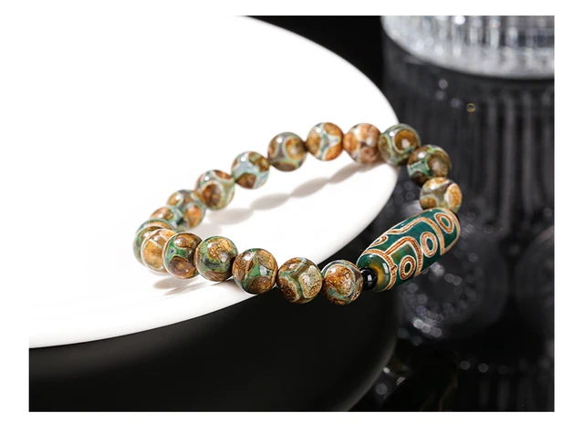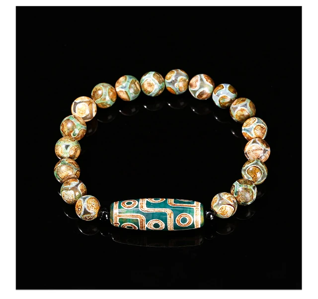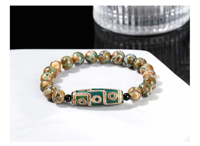Natural Green Nine Eyes Tibetan Dzi Agate Barrel Beads Bracelet Women Men Retro Healing Buddha Prayer Charm Yoga Jewelry Gift