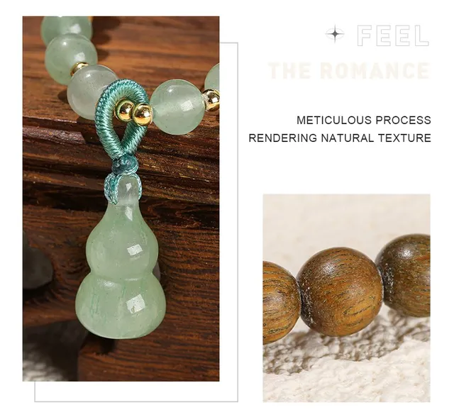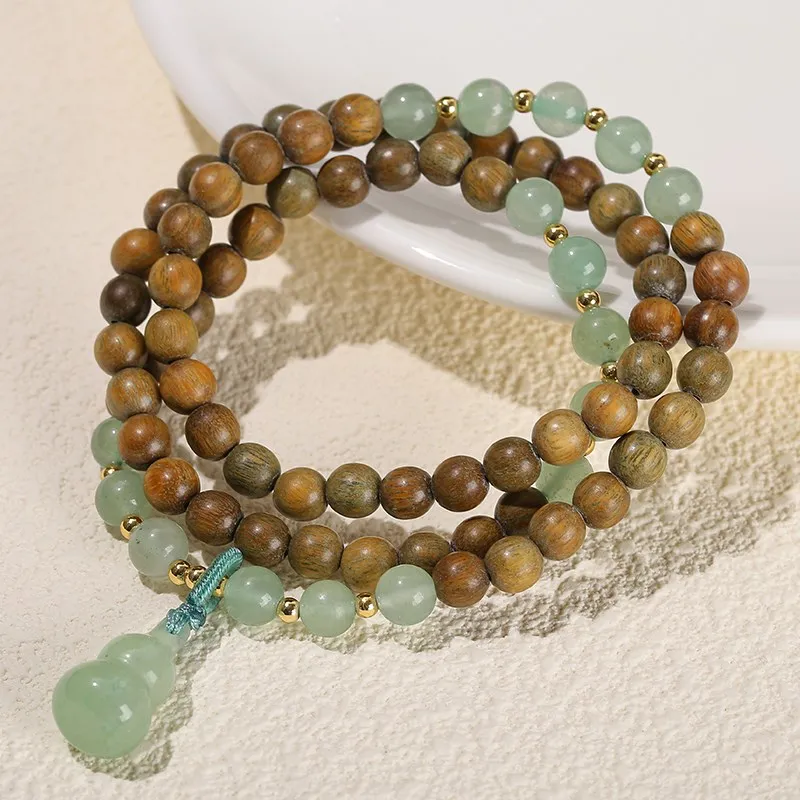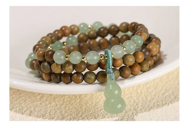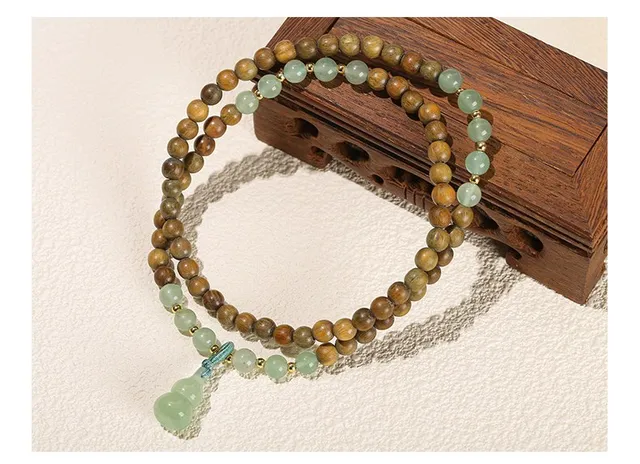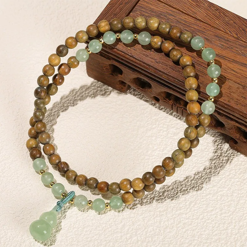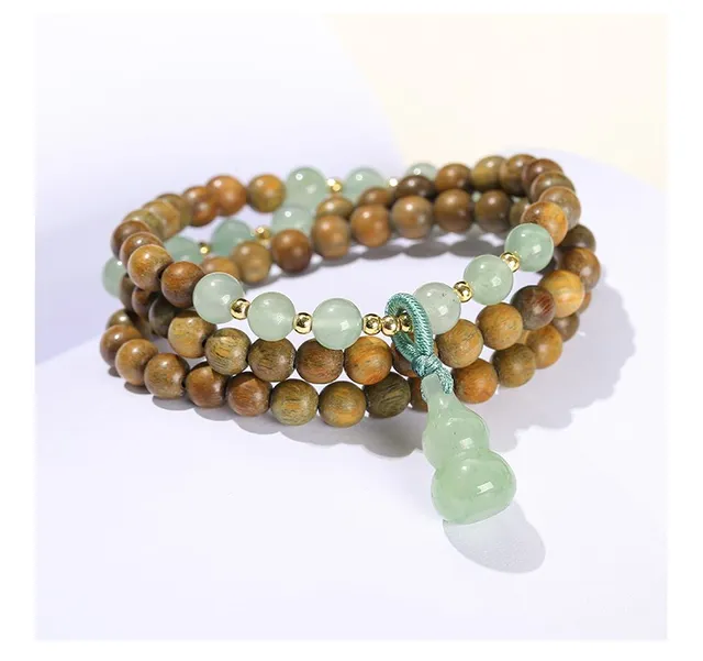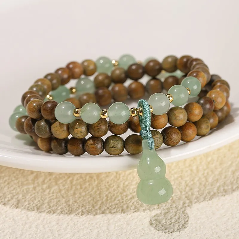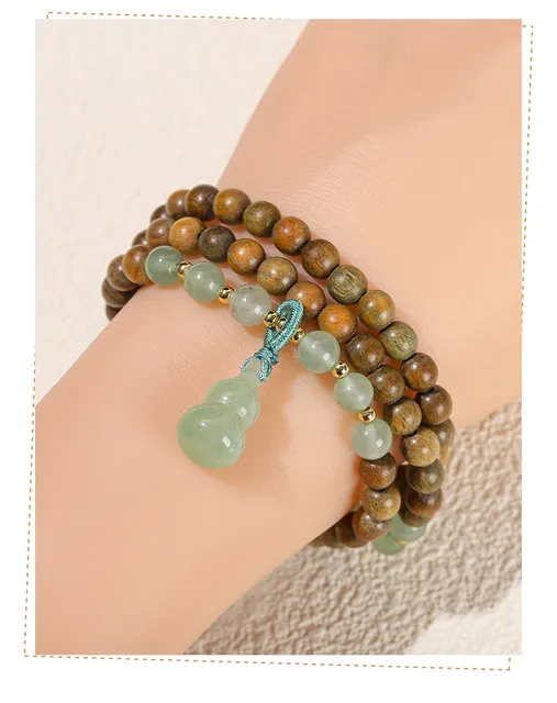 Natural Green Sandalwood Gourd Jade Pendant Multi-layer Bracelet Women Men 6mm Buddha Bead Handmade Yoga Rosary Wrist Bangles