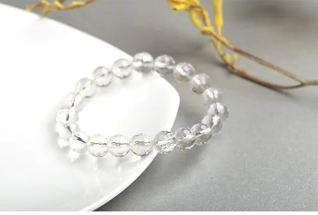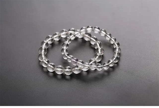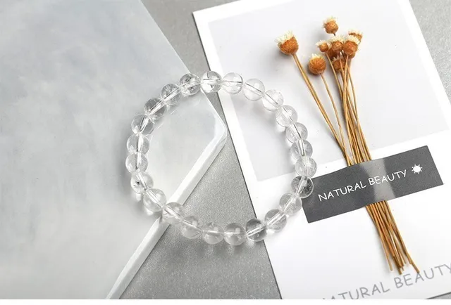 Natural Rock Crystal Beaded Bracelets Women Fashion Reiki White Clear Quartz Round Stone Chakra Strand Bangles Summer Jewelry