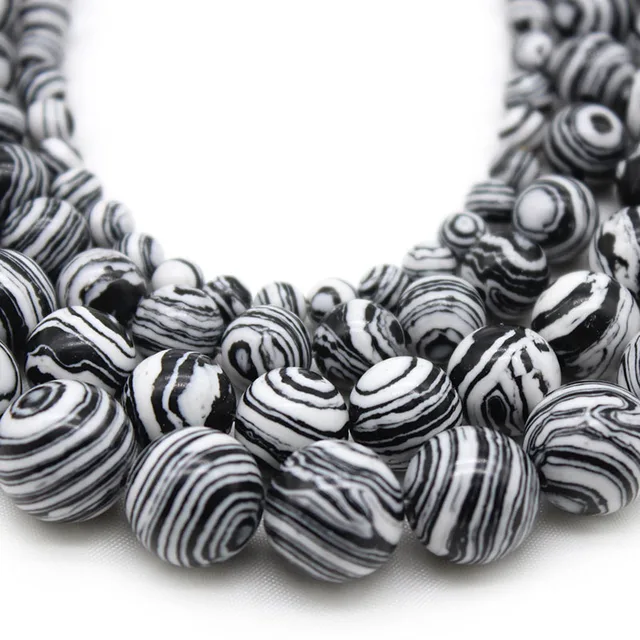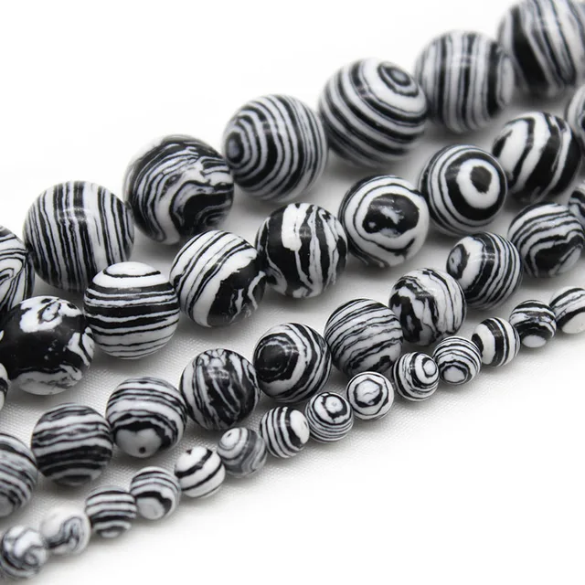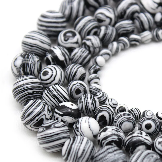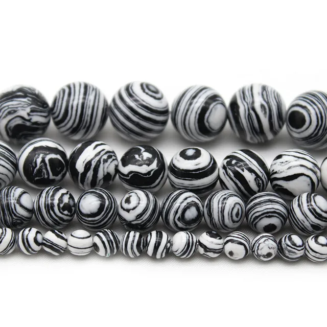 Natural Round stone Beads White Black Malachite Spacer Beads For jewelry Making DlY Bracelet Necklace Accessories 6/8/10mm