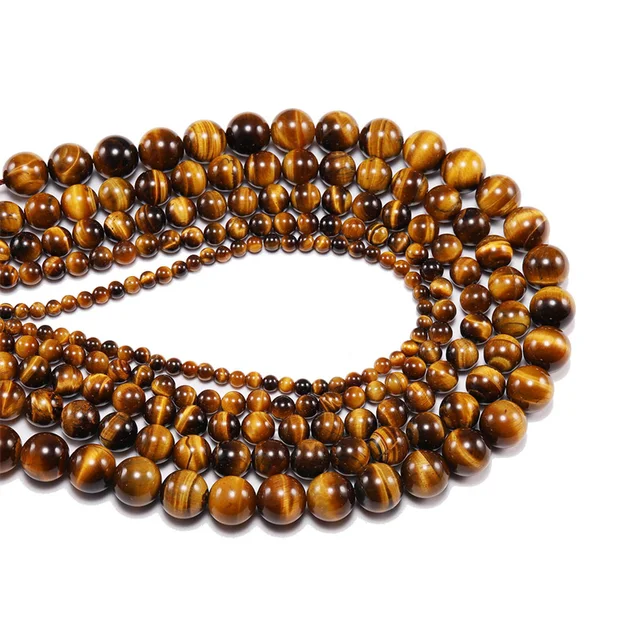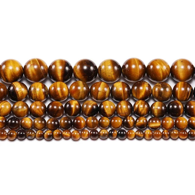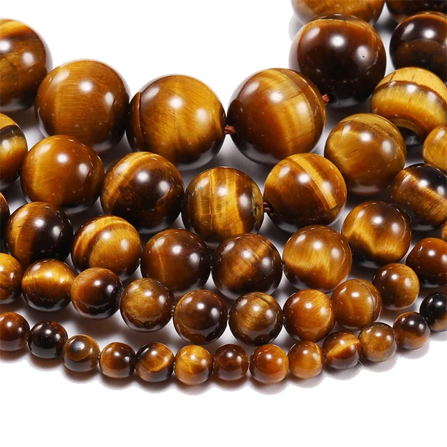 5A Natural Smooth Brown Tiger Eye Stone DIY Bracelet Necklace Accessories Loose Round Beads for Jewelry Making 15″ Strand 6 8 10MM