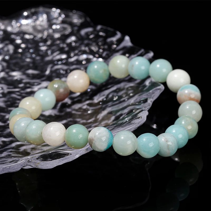 Natural Stone 3A Amazonite Round Beaded Bracelet Women Fashion Single Circle Stretch Rope Bracelet Healing Stone Jewelry Gift