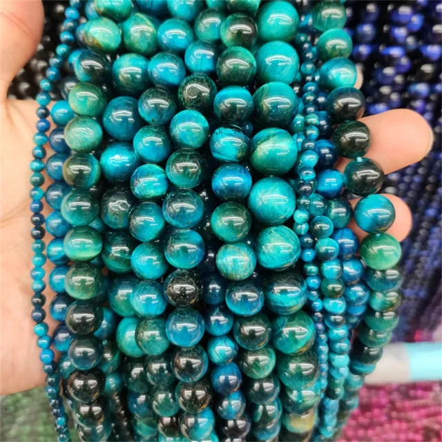 Natural Stone Beads Royal Blue Tiger Eye Round Loose Beads Diy Charm Bracelet Earrings for Jewelry Making 15″ Strand 4/6/8/10/mm