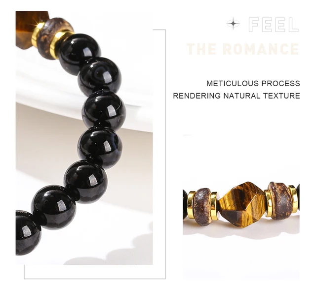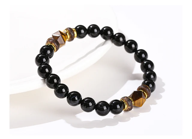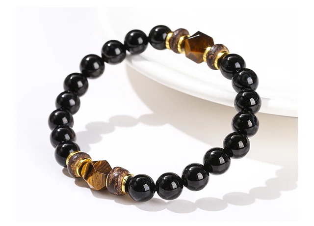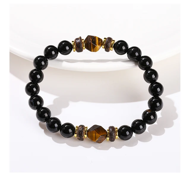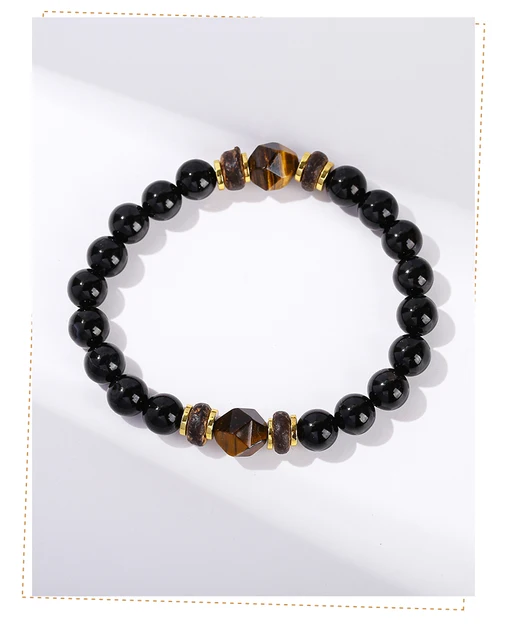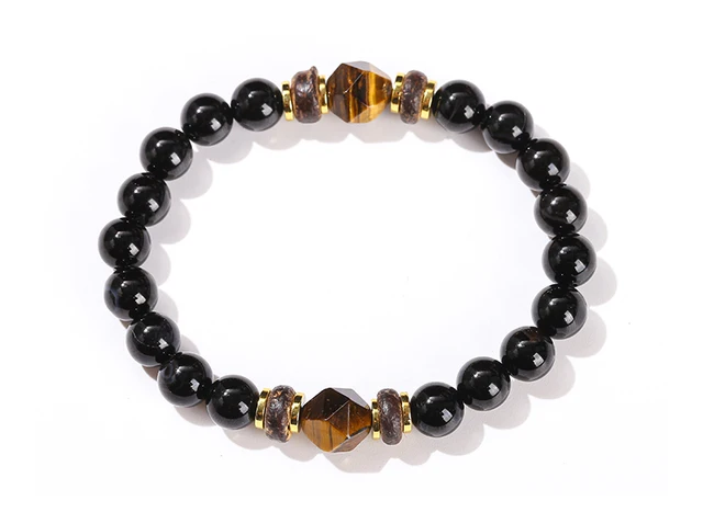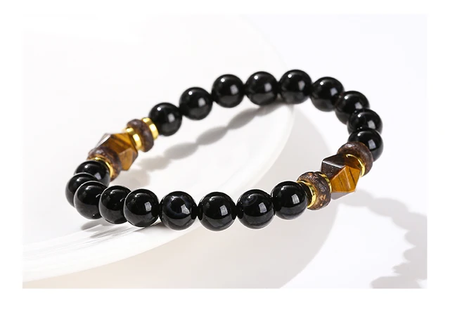 Natural Stone Black Agate Yellow Tiger Eye Faceted Bead Strand Bracelet Women Men Bohe Style Yoga Healing Energy Jewelry