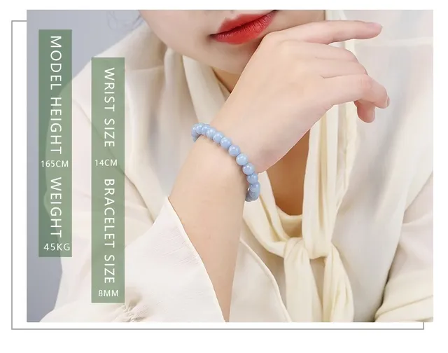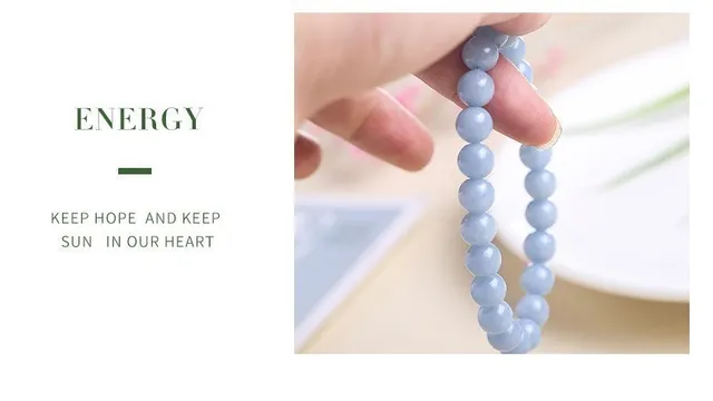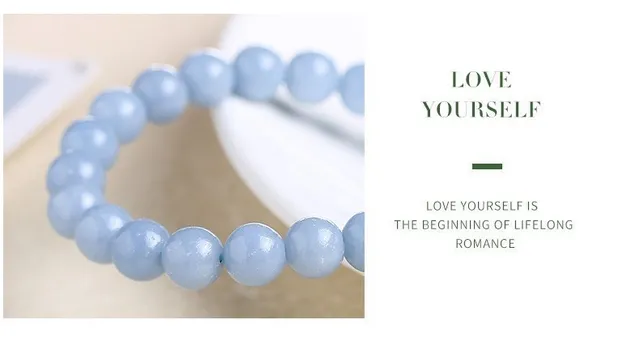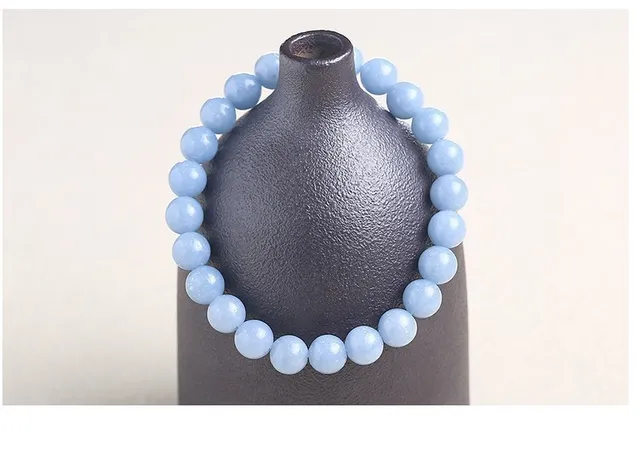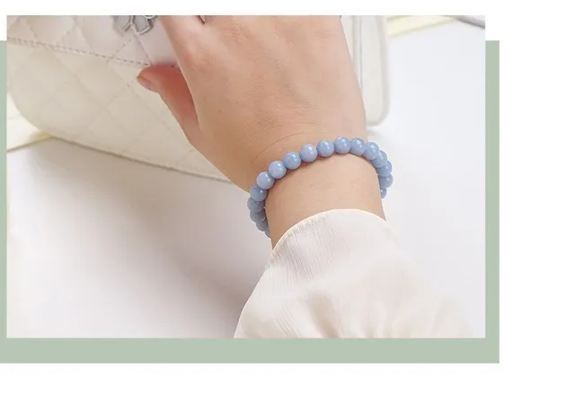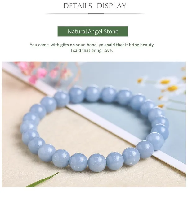 Natural Stone Blue Angelite Angel Bracelet Women Fashion 6 8 10mm Beads Single Elastic Romantic Crystal Bangles Yoga Jewelry