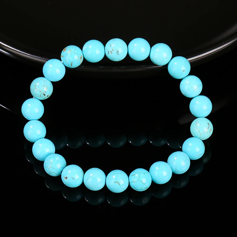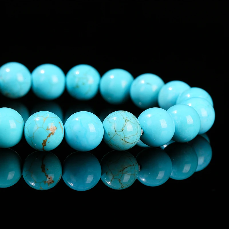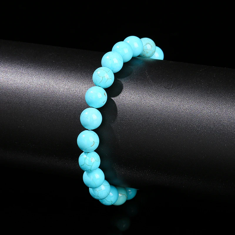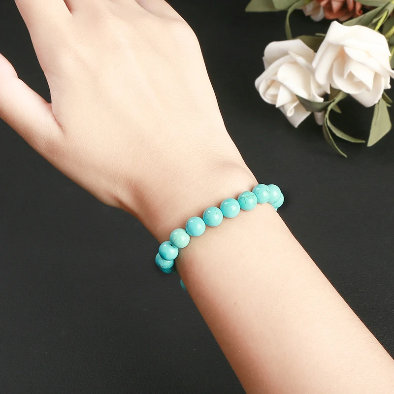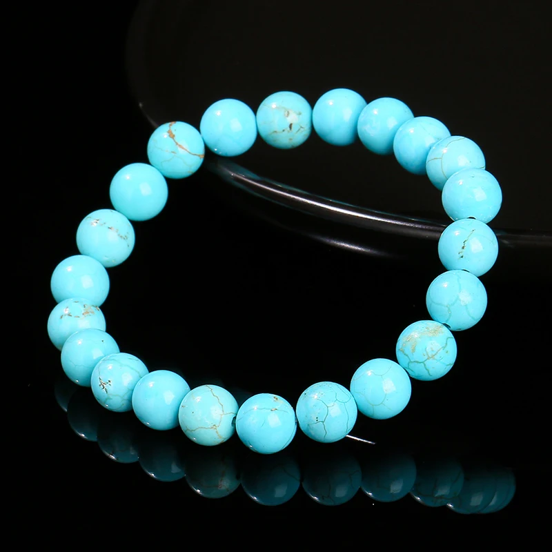 Natural Stone Blue Turquoise Bead Strand Bracelets Women Men Vintage Single Circle 6 8 10mm Stretch Bangles Yoga Wrist Gifts